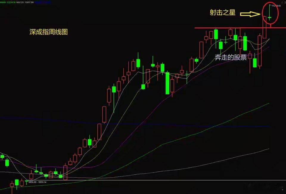 虽说深市高位出现射击之星形态,但是他们依旧会凭借这些成分股优势,来做高位震荡,并利用大盘冲击新高的走势,做出反向操作,来维持高位出货的走势。