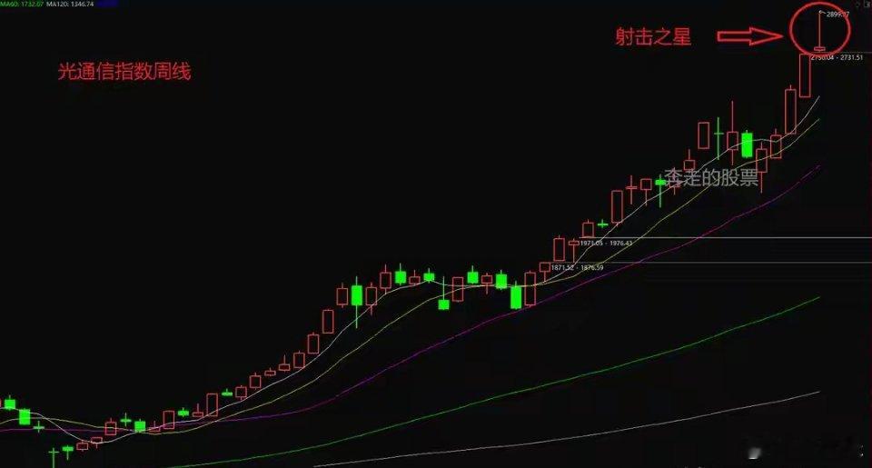 1,从周线情况看,深成指,创业板指数,光通信指数,都是收出射击之星经典见顶形态。