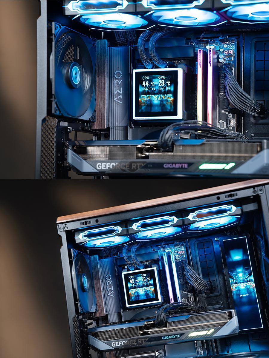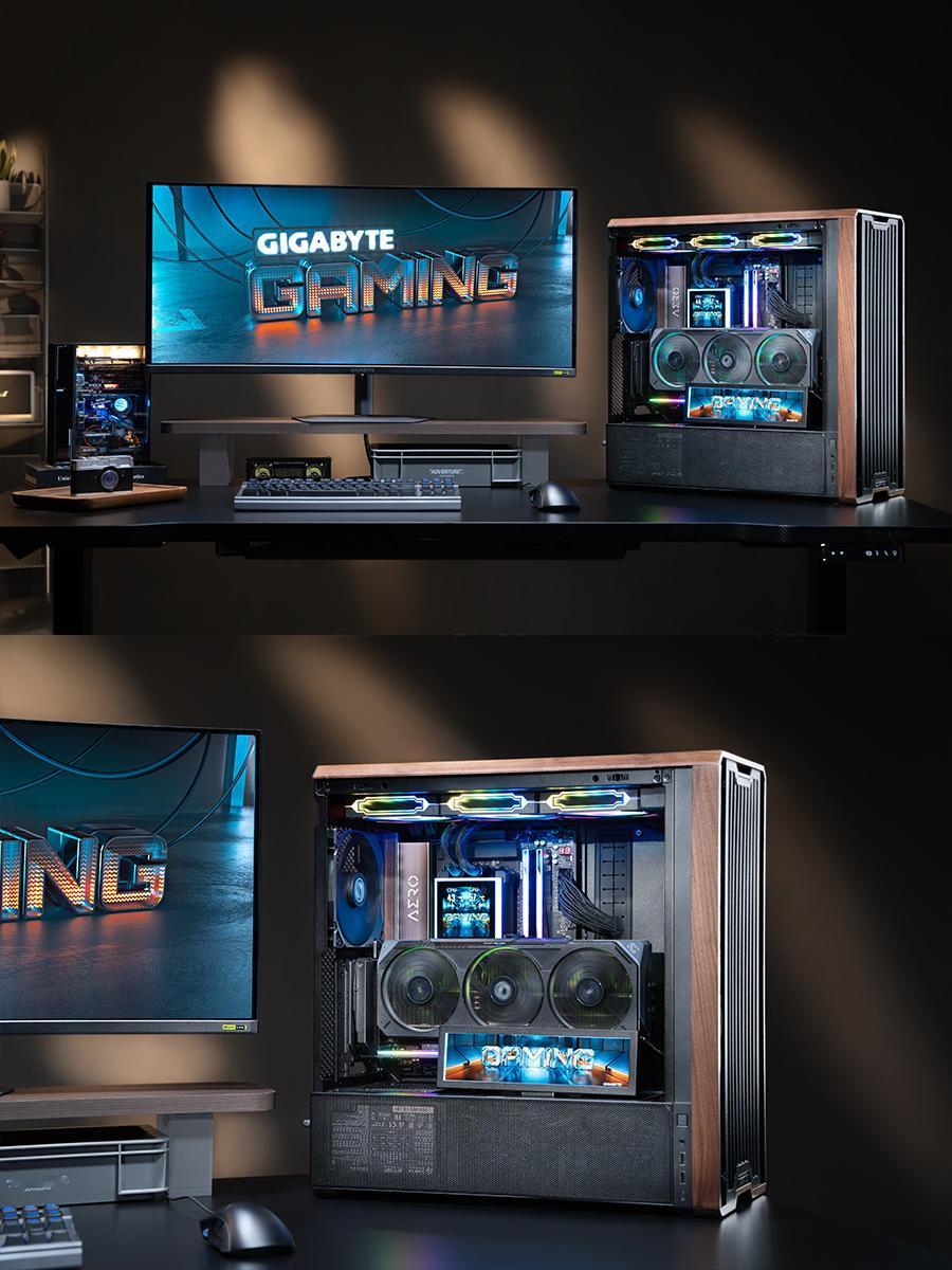 来啦~静谧型桌搭超有范儿,X870E AERO DARK X3D WOOD实装上机
