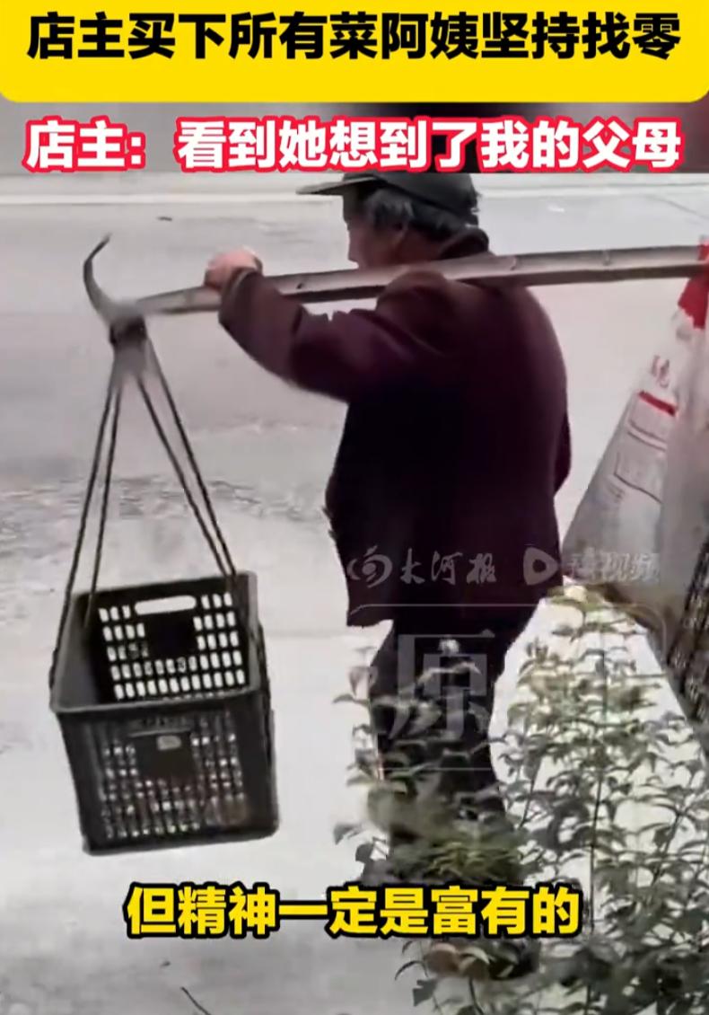 事情说起来简单得不能再简单。他在自己店门口,看见路边蹲着个卖菜的阿姨。两个箩筐里装着些青菜,不多,看着也就是自家地里种的,吃不完拿出来卖