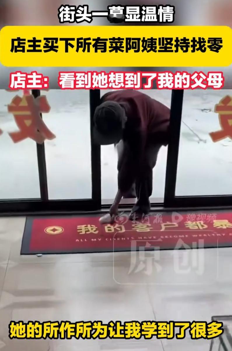 泪目!福建仙游,男子在自己店门口,看见路边蹲着个衣衫褴褛的卖菜的阿姨,一下就想起了农村的父母,于是掏出100块钱把菜全买下来,可阿姨在临走前却把找的零钱放在了门口,只收下卖菜的钱,这让男子相当感动