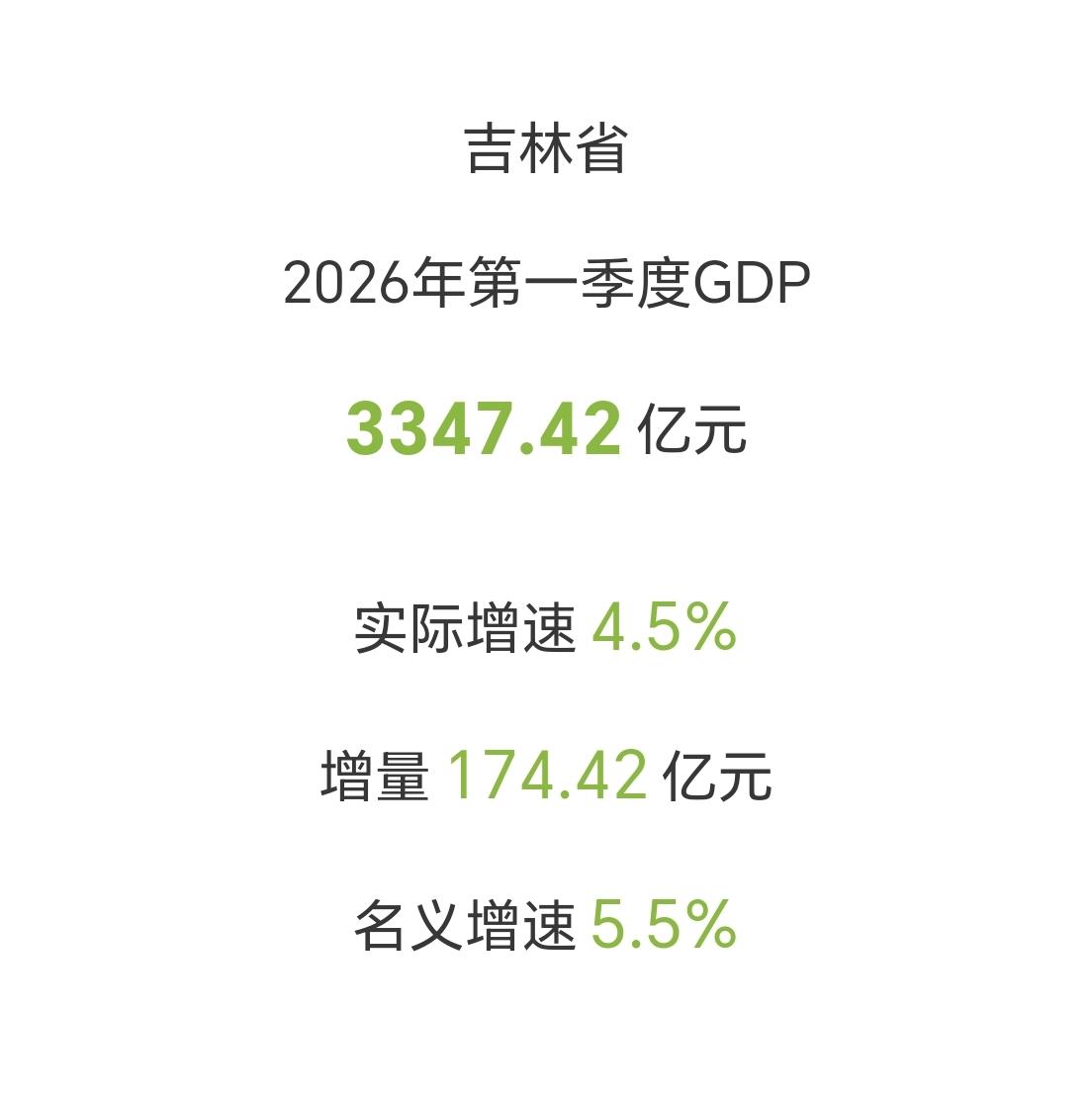 【2026年一季度,吉林省GDP超过3300亿元,其中增量超过170亿元】