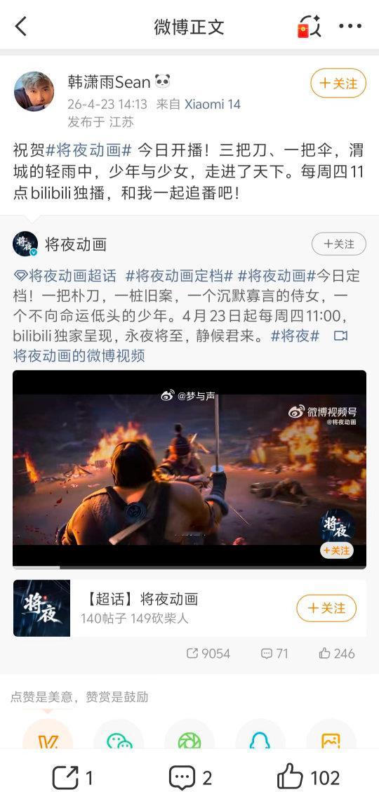 将夜动画开播将夜动画开播好多人啊 评论区团建的那些人,应该和我一样,都是将夜的老读者老观众了。动画开播对我们来说,不只是一部新番上线,是一次和老朋友的聚会。