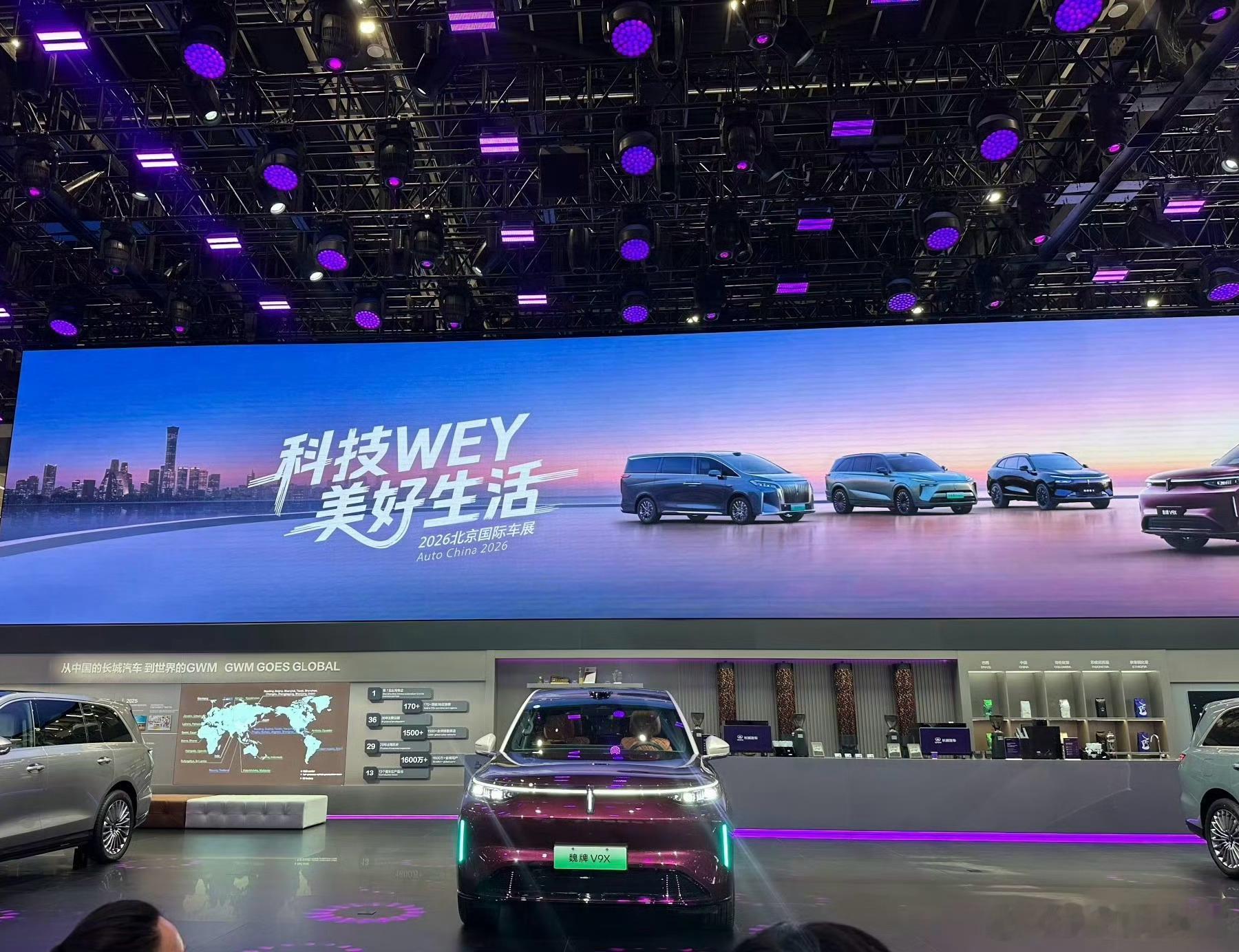 2026北京车展魏牌这边的话,说了下截至今年2月,全球用户突破70万,单车均价31.1万,这个数据还挺强。展台主角无疑是魏牌V9X,同时也迎来了新明星车主杜江,在车展现场预订了紫金色魏牌V9X当做结婚纪念礼,这车基于“归元S”平台打造,大六座SUV,纯电续航470km,配了800V + 6C超充,搭载2.0T发动机 + 双电机组成的超级Hi4系统,纯电续航可以到470km,前两天刚开始预售,有没有下订了的朋友智驾数码团