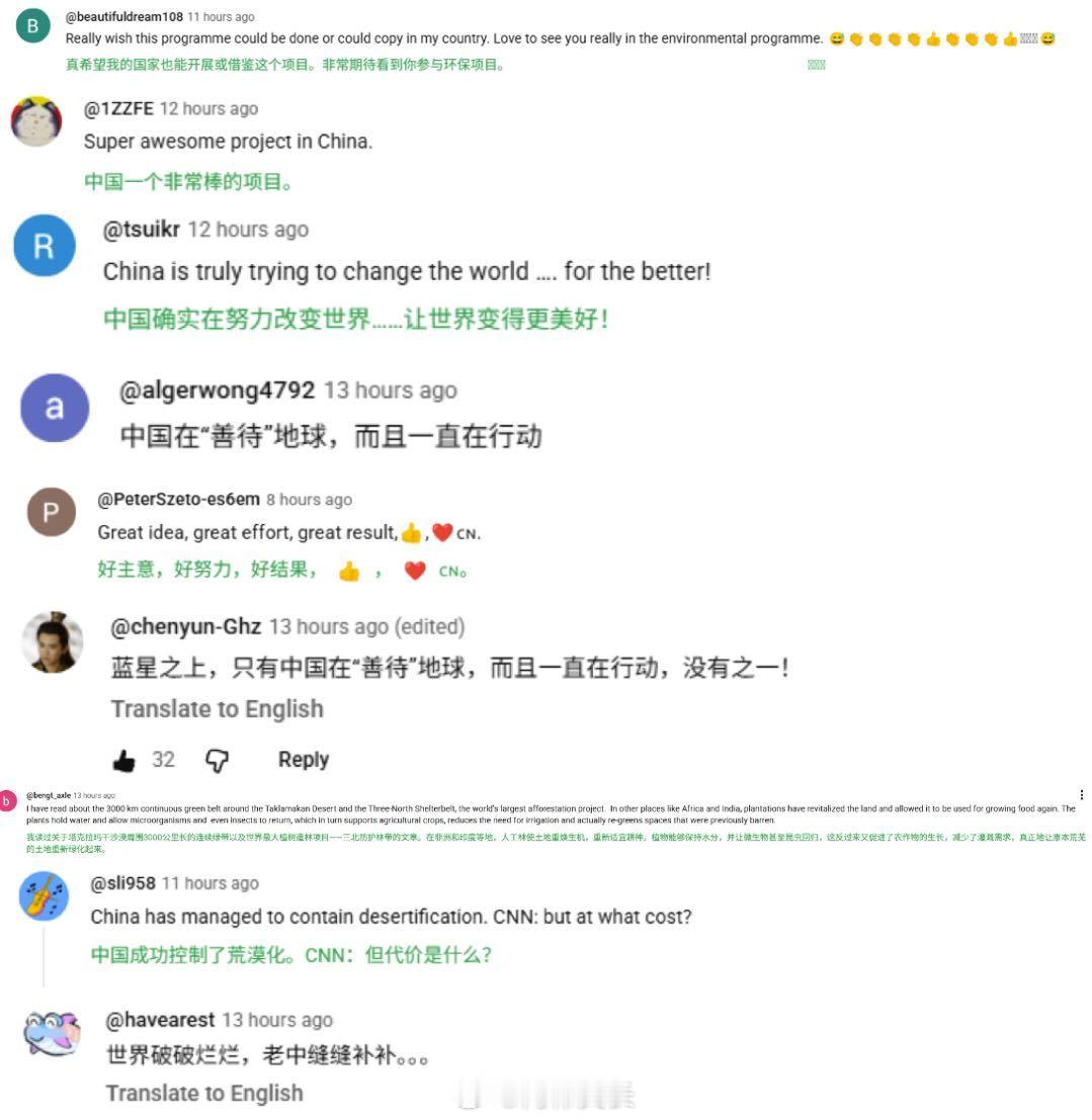 海外网友说只有中国在让世界变美好中国始终深耕公益与环保,默默践行责任。世界破破烂烂,中国人用心缝缝补补。长期主义治沙护绿,十年荒漠变绿洲。欢迎外国博主走进无滤镜真实中国,看见踏实温暖、持续为世界变好的东方力量✨