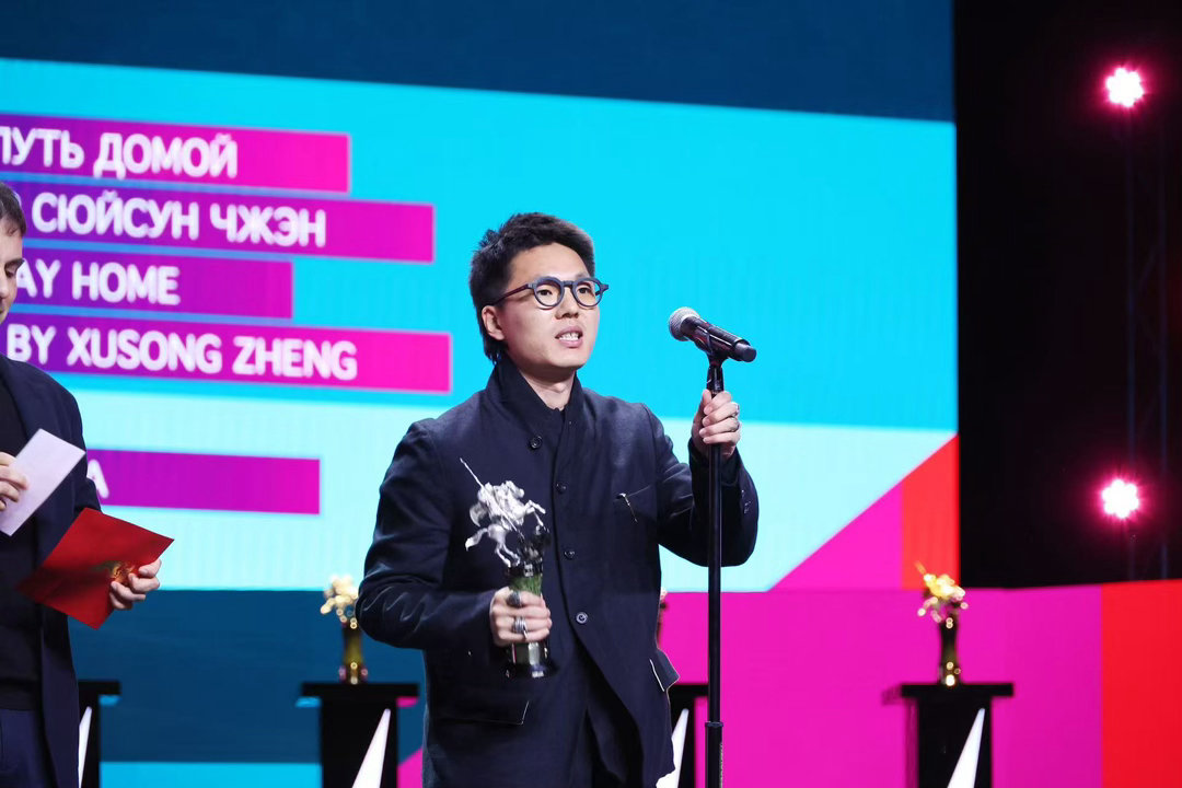 莫斯科国际电影节是世界上历史第二悠久的国际电影节,仅次于威尼斯国际电影节。本届电影节共收到超过1500份申请。作为本届纪录片竞赛单元的入围影片,《劳途归巢》凭借对中国西南乡镇劳动者生存状态的零干预白描,以及对人类共通的坚韧生命力的深刻洞察,不仅征服了国际评委,更在世界舞台上立起了一张饱含温度的“中国精神名片”。 在盛大的颁奖典礼上,导演郑旭松手捧奖杯,发表了极其动人的获奖感言。他动情地说道:“有句俄罗斯谚语是:鱼在寻找更深的地方,而人则在寻找更好的地方。所以我们相聚在莫斯科国际电影节。”