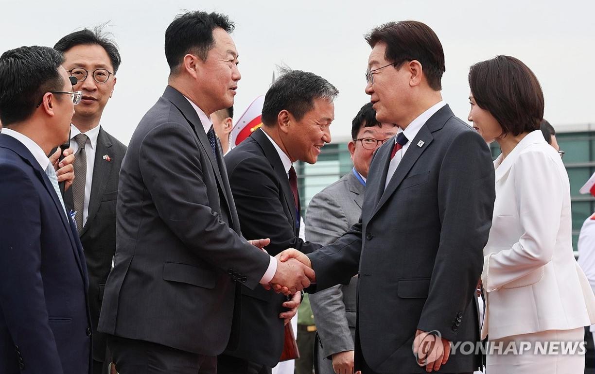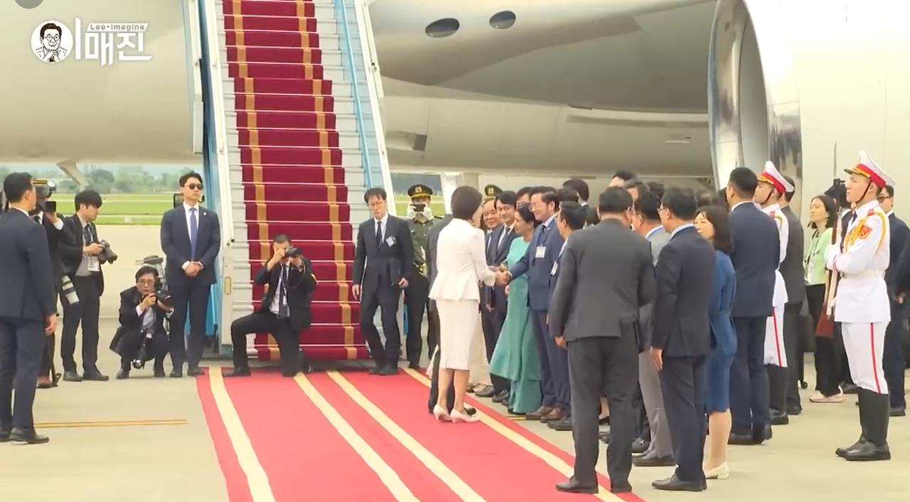 李在明与夫人离开越南返程!4月24日韩国总统结束越南行程,携手夫人一起前往机场回国,让人没想到的是机场布置的十分隆重。