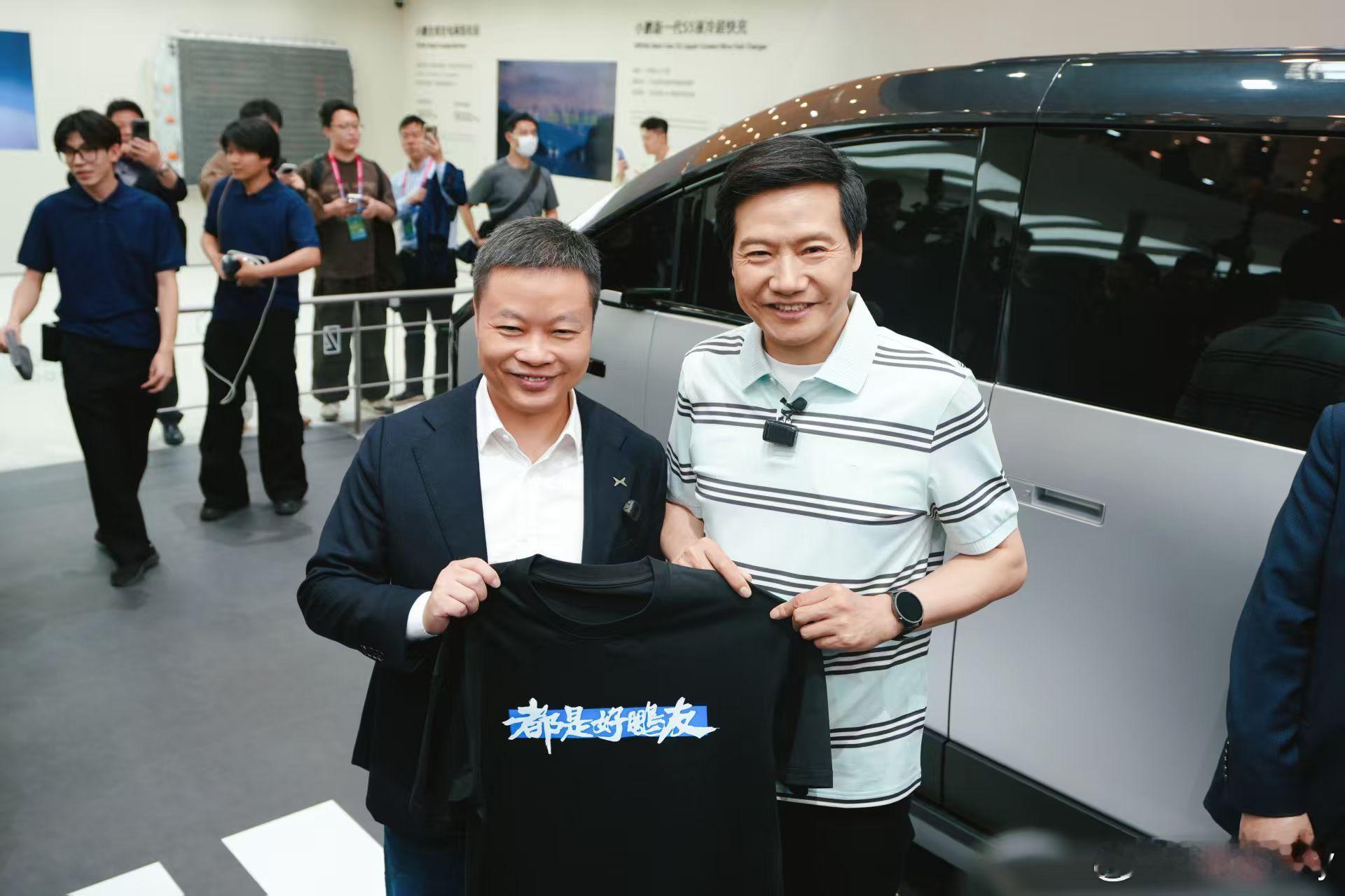 家人们,这次车展名场面来了!雷总给理想、小鹏、蔚来、比亚迪各送了一件T恤,每件都藏着故事。