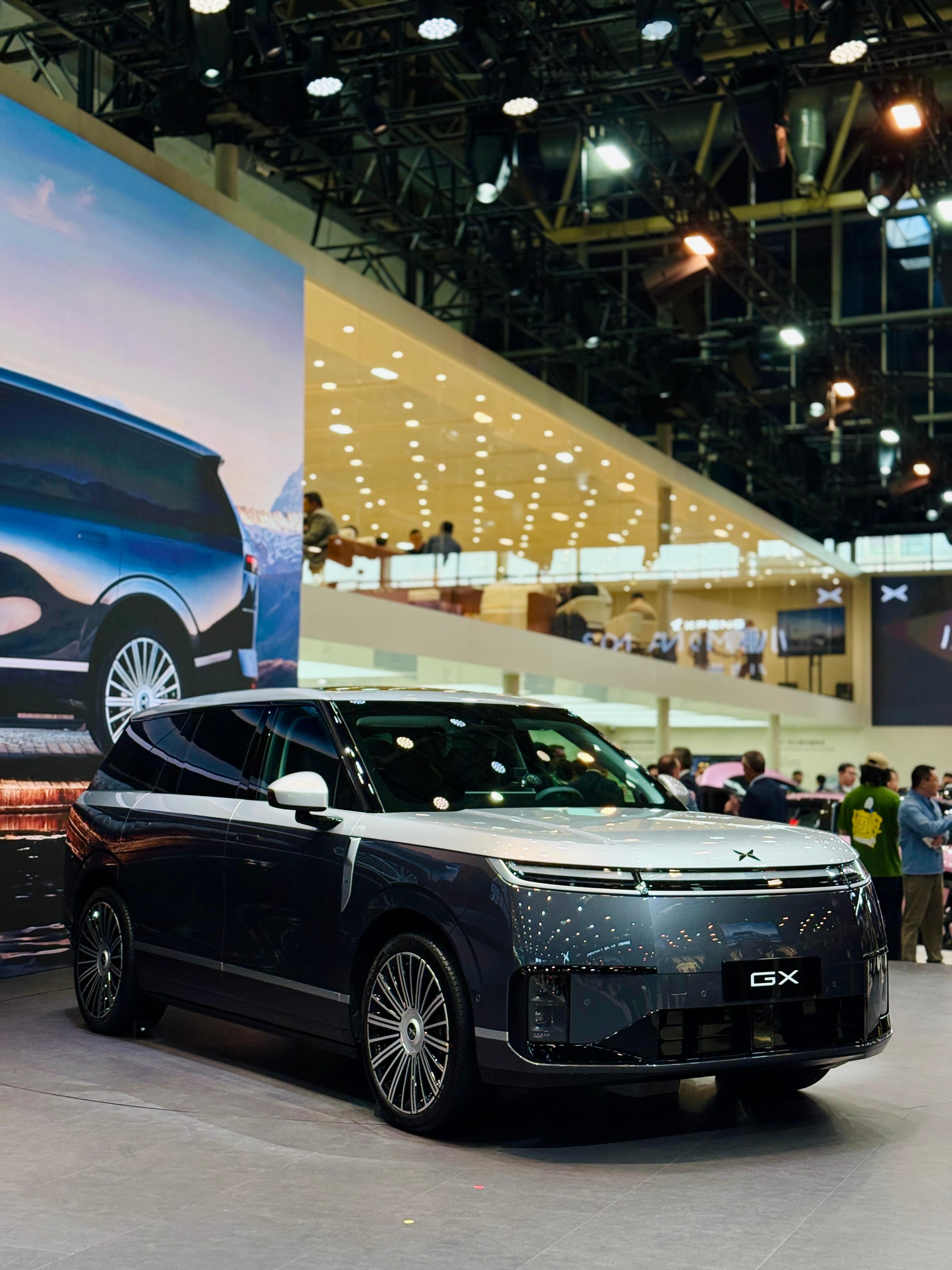 小鹏今天在北京车展首次亮相了GX的全新配色:昆仑云境双拼色(图2)(图8),银色与深灰的结合让车身质感加倍,果然高端豪华全尺寸都离不开双拼色的加持。