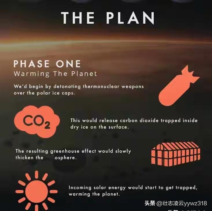 之前想靠融化火星两极干冰,释放温室气体给火星升温,就算把干冰全用光,也只能升温10℃,离30℃的宜居标准差太远,就连核爆火星的疯狂想法,也彻底没用。