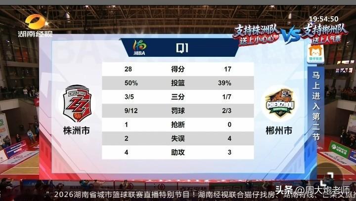 第一节,双方战斗激烈,但郴州队似乎没有找到手感,投篮成功率较低。株洲队打出13:4的良好开局。郴州队随着刘健的实破,撕开了株洲队的口子,比分逐渐追了上来。