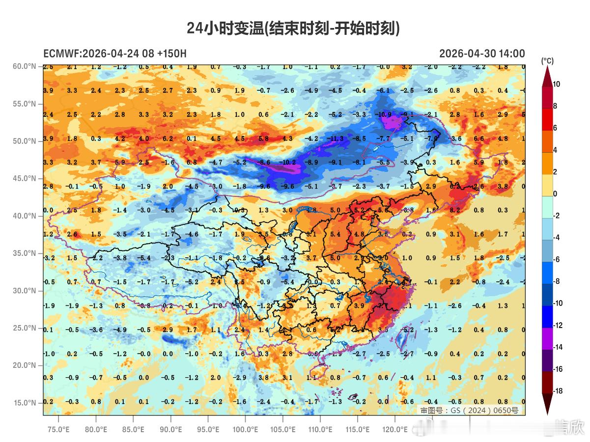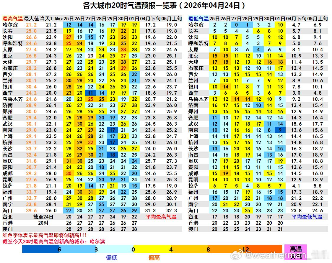比如哈尔滨明天最高降到12℃,比今天降9℃。广州明天升9℃,最高29℃。明天总体上还是升温更多。而且在新一轮降雨到来前,南方超过30℃的范围还会有所扩大。明天成都可能是今年首次上30℃、27日杭州可能是今年首次上30℃。但之后冷空气+阴雨,气温还会明显下降。29日杭州最高降至17℃。