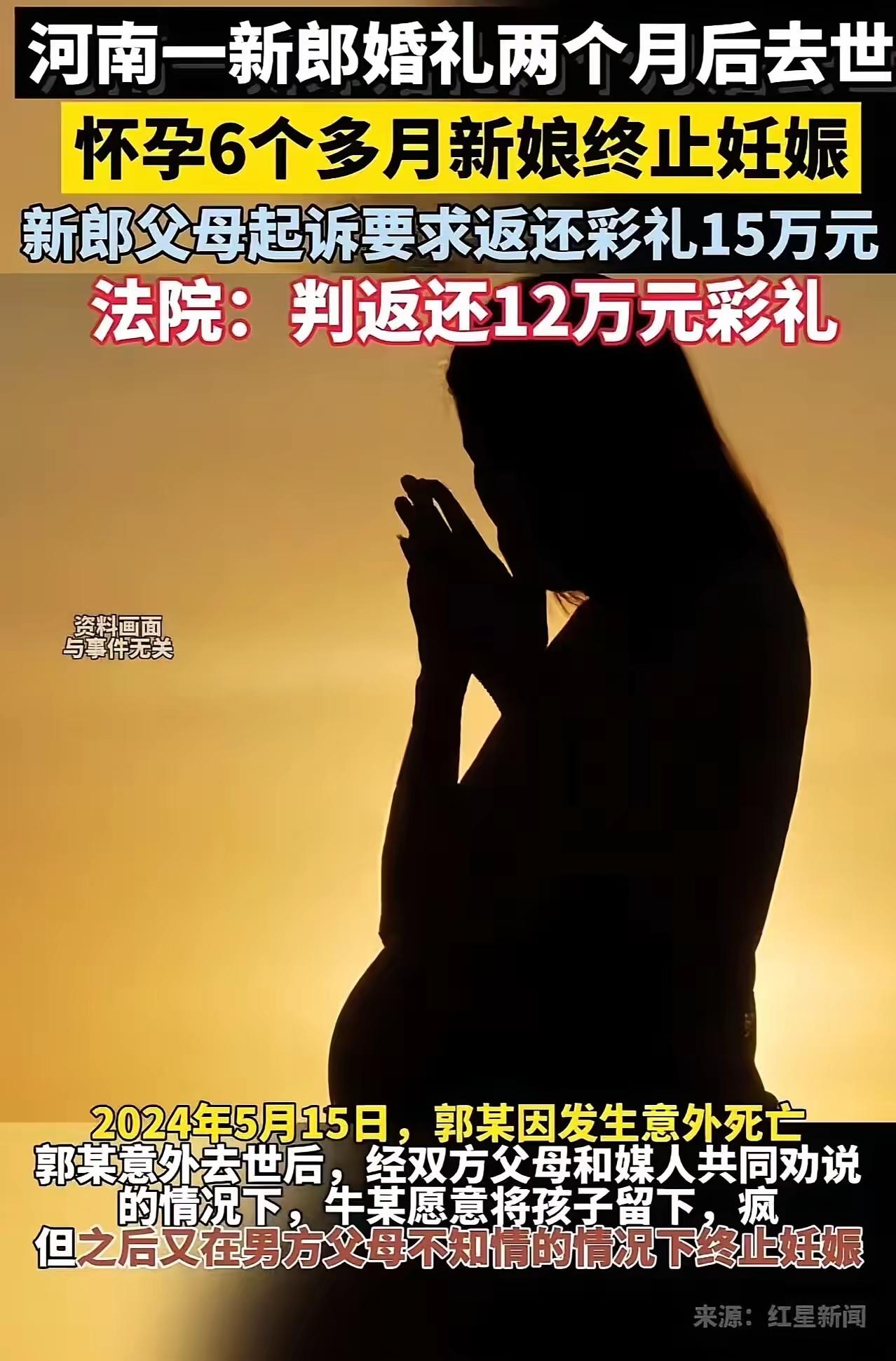 新婚俩月丈夫意外离世,女子身怀六甲答应婆家留下遗腹子,转头偷偷引产。15万彩礼一分不想退,最终法院终审判决,返还12万!情理和现实,到底该怎么权衡?