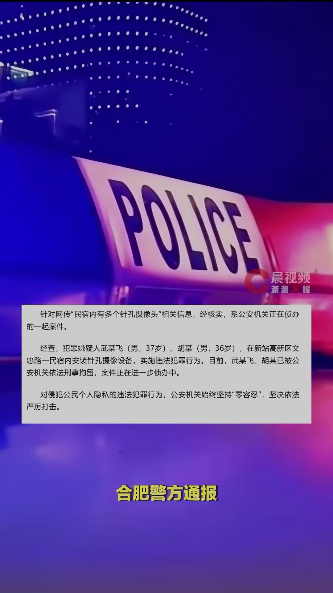合肥警方通报:民宿装针孔摄像头一案,犯罪嫌疑人已被刑拘偷拍个人隐私必须严办