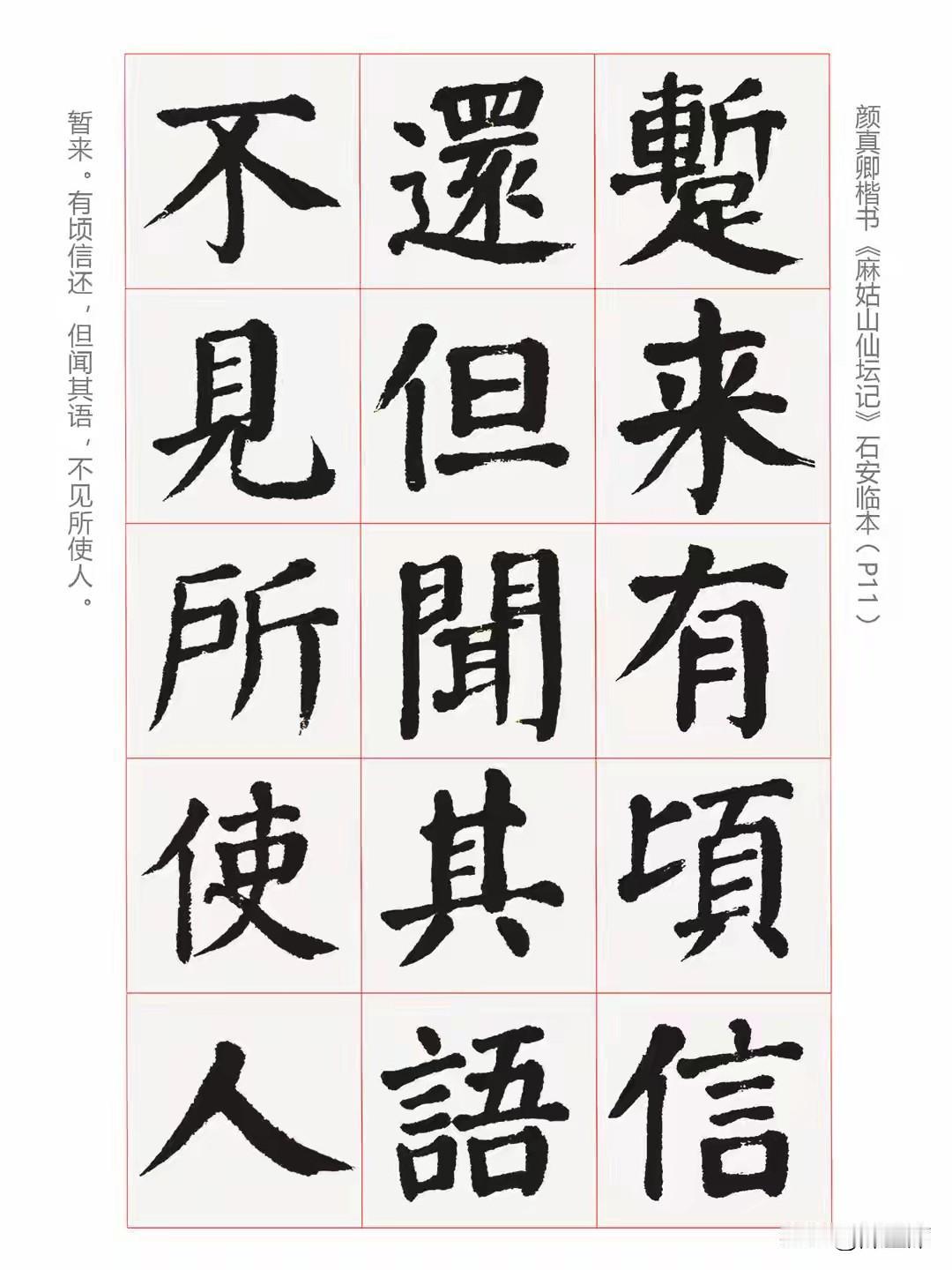 其书法风格独特,与常见颜体雄浑刚健不同,有超脱尘世的仙道气息,少了威严,多了洒脱。笔法上,横画起笔藏锋深、收笔回锋含蓄;竖画粗壮有弹性;撇捺舒展幅度收窄;转折处方折圆转交替。结构上,单字中宫收紧,外围宽松,形成强烈张力。不愧是楷书学习的典范。