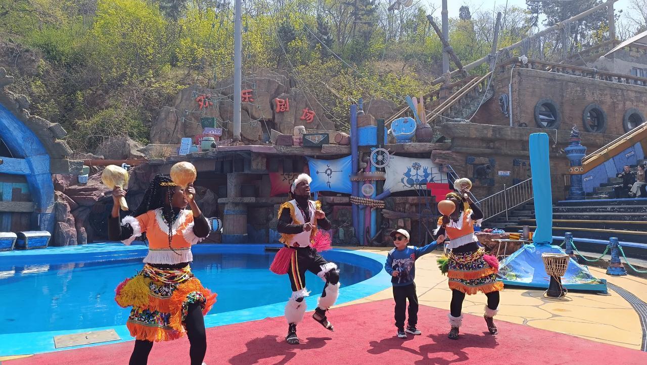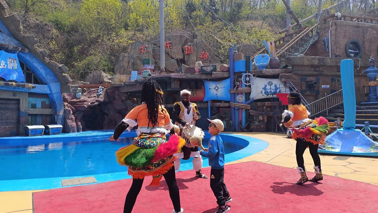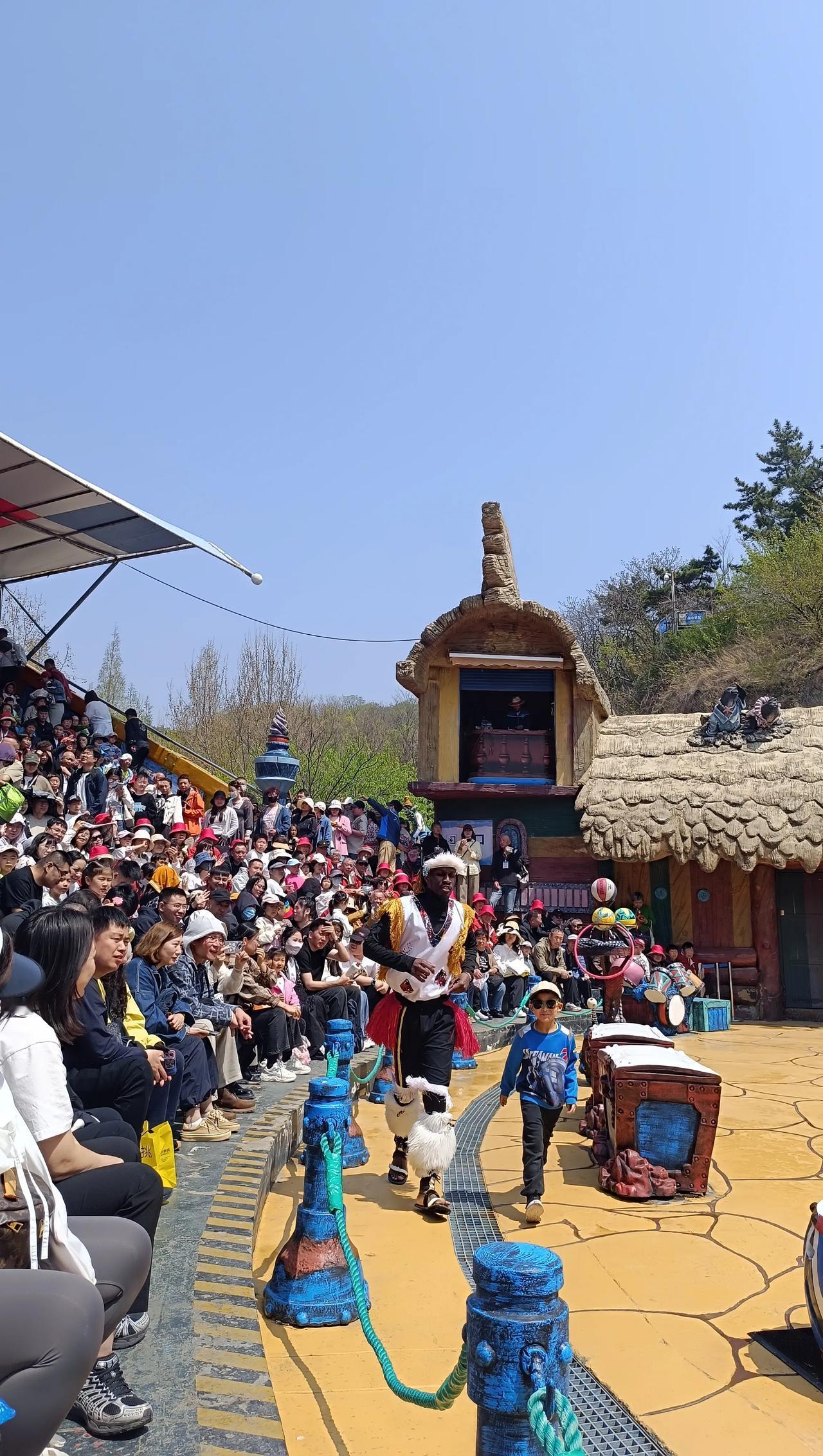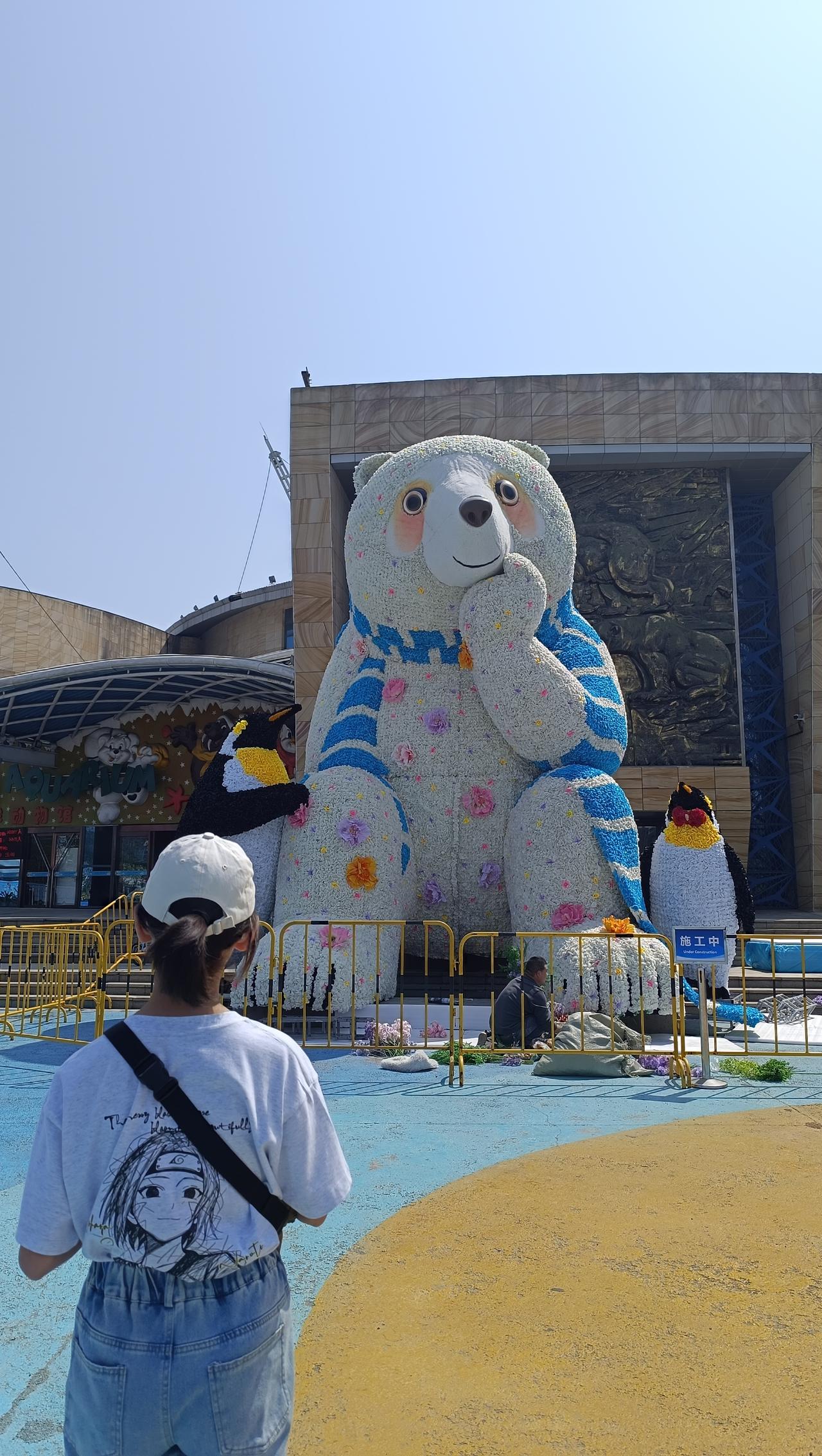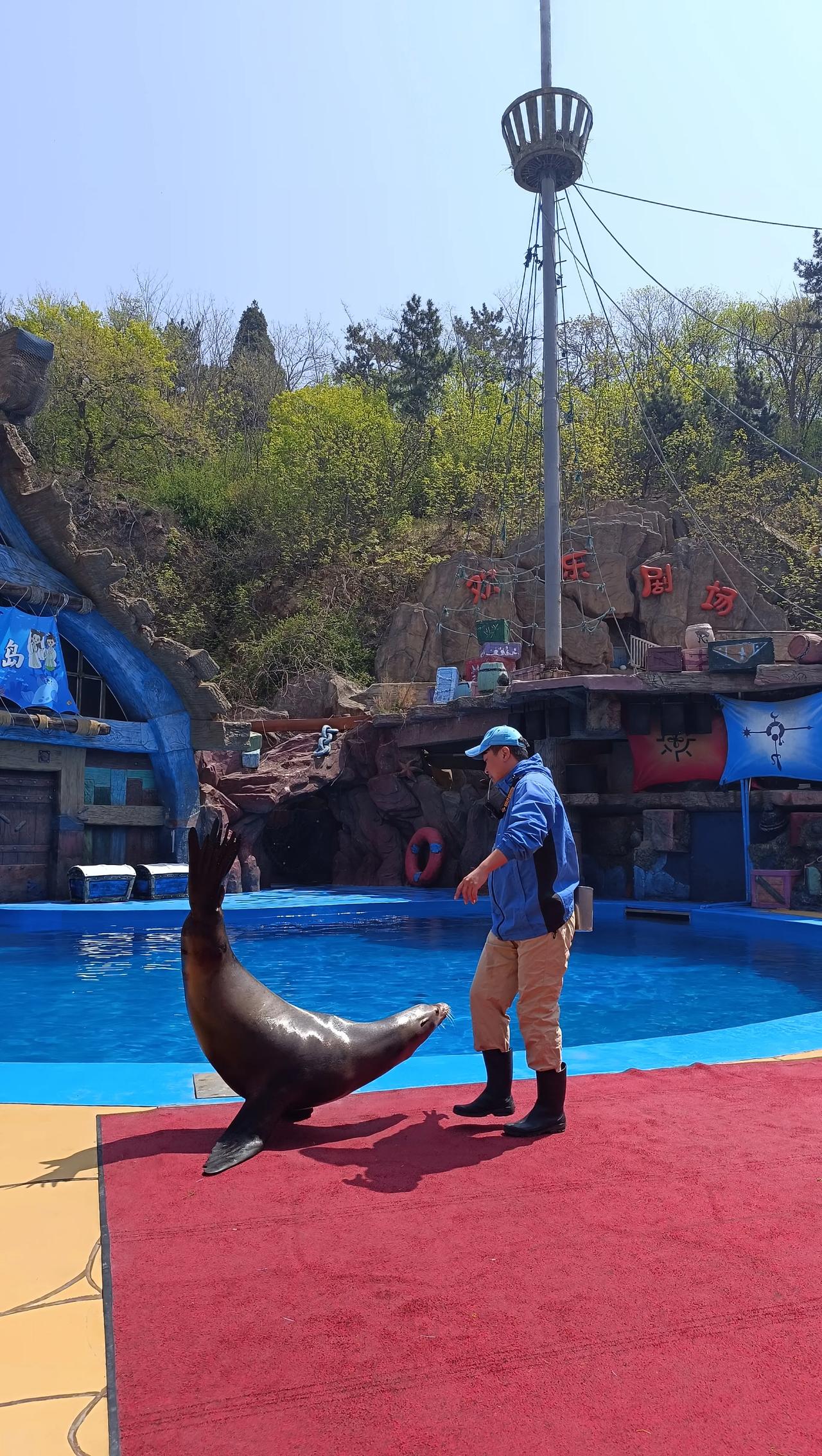 进了公园看了眼表演时间,刚好约1小时后有一场欢乐剧场的表演,我们直奔排队口附近,找个树荫踢毽子。就在极地馆外侧,能听到极地馆内表演的声音,也因为特别熟悉流程,我们知道里面演到哪了[偷笑]那边表演散场后,会有一大众游客到欢乐剧场排队,我们盯着他们来的方向,有几波人了,我俩赶快去排队[呲牙]近水楼台!所以坐的位置也正[6]