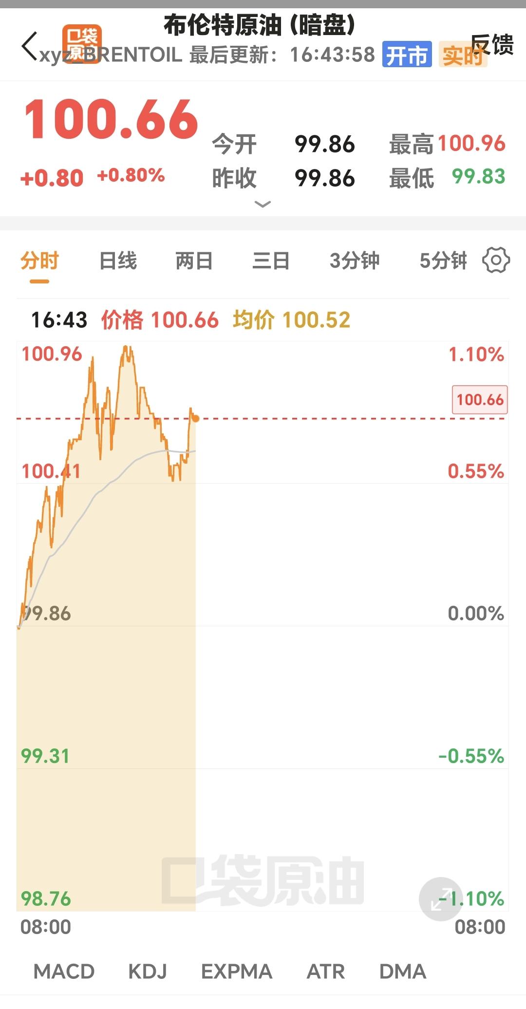 布伦特原油暗盘现在上涨了0.80%,报于100.66美元,原油还处于相对的高位,原油处于现在这样的位置,就说明大家对后市保持着谨慎。