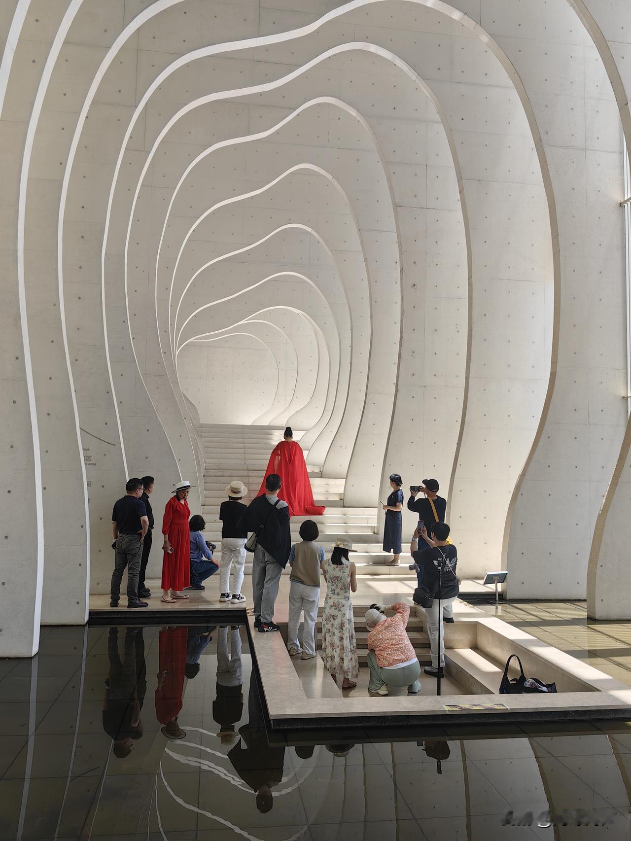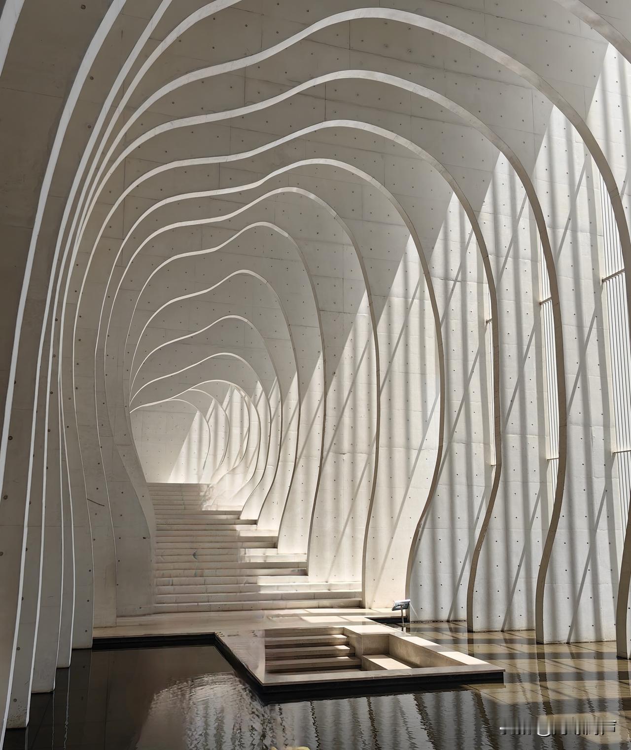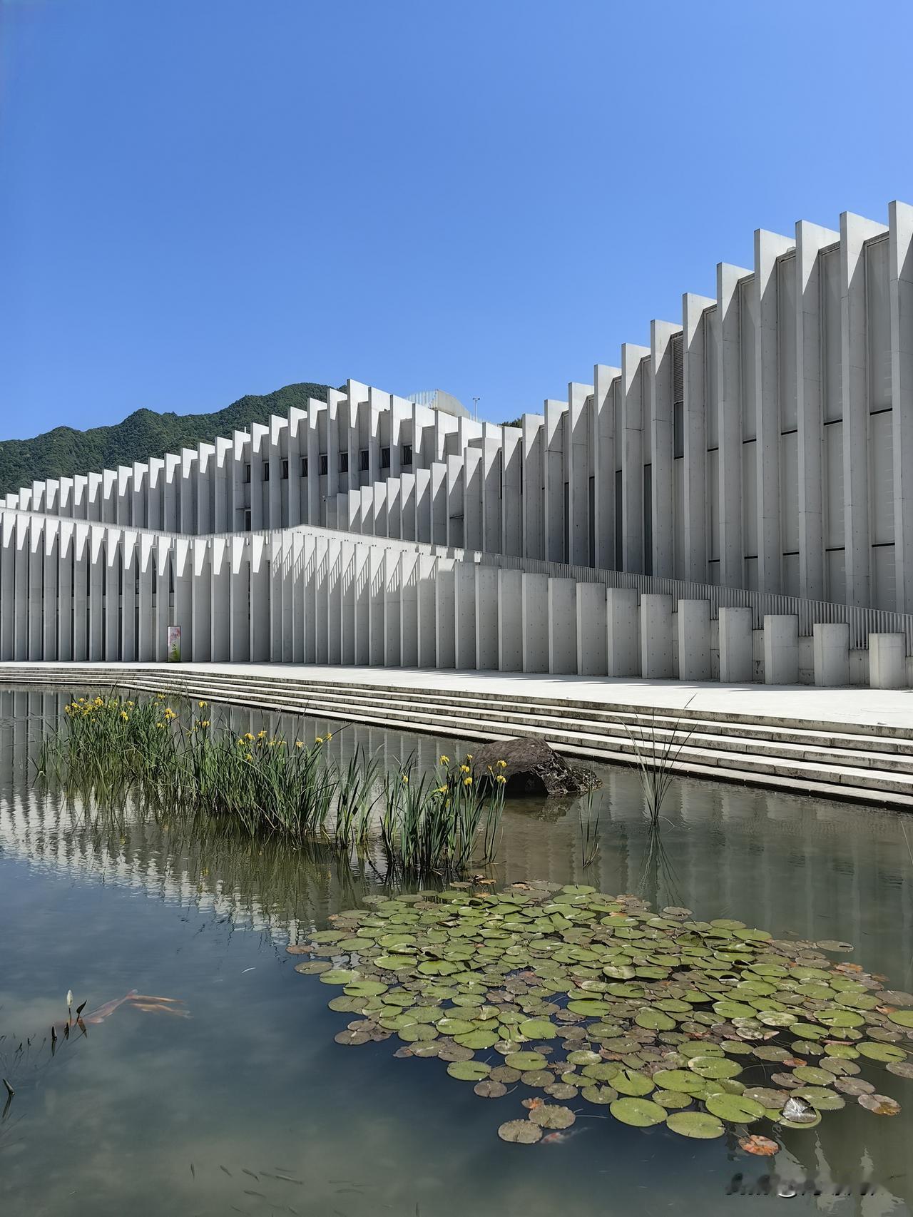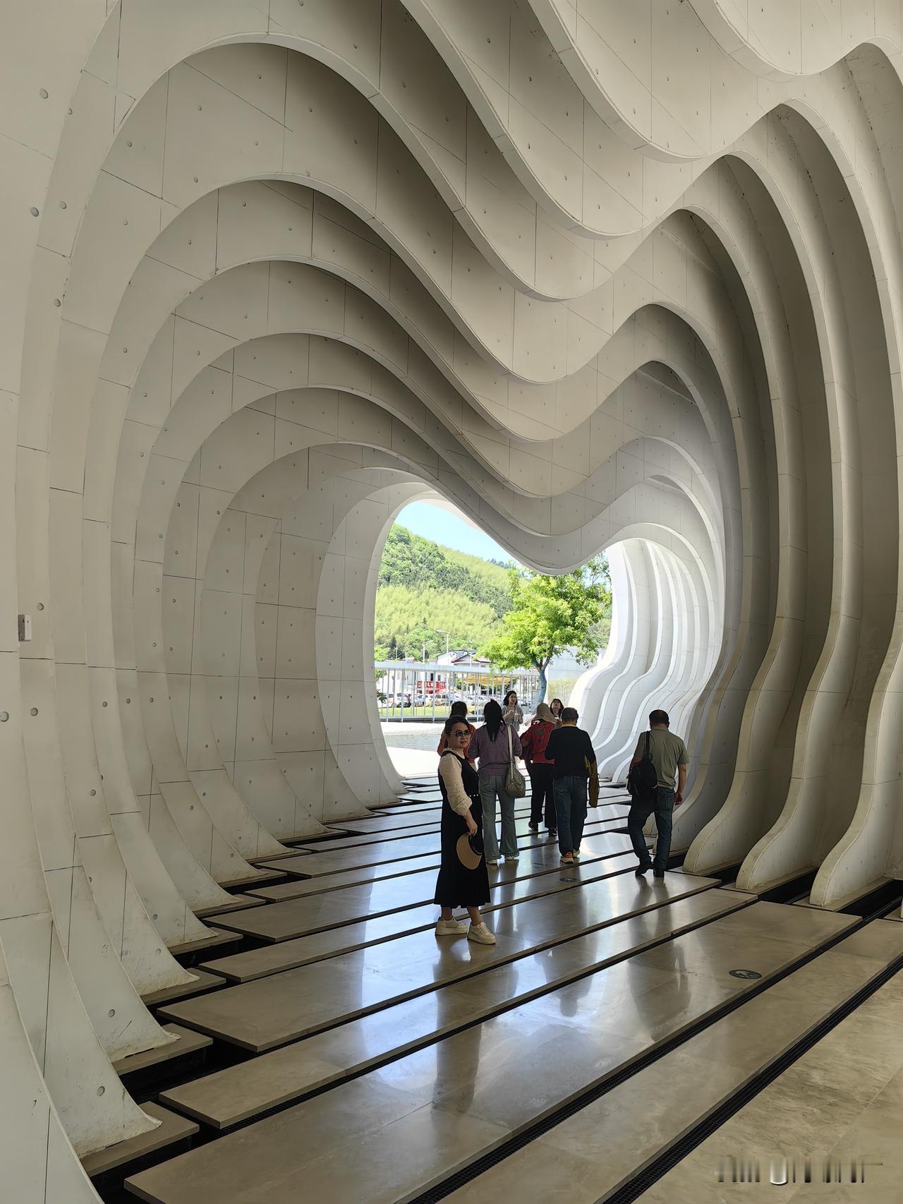 化实为虚,以“云笺”“雪浪”精妙比喻宣纸与园区建筑相融的意境,层层宣纸如云似雪,凝练出温润如玉的质感,又化作满卷诗意。既描摹出文化园兼具自然意趣与人文美学的景致,又紧扣宣纸本色,景中含情,意境空灵秀美。​​