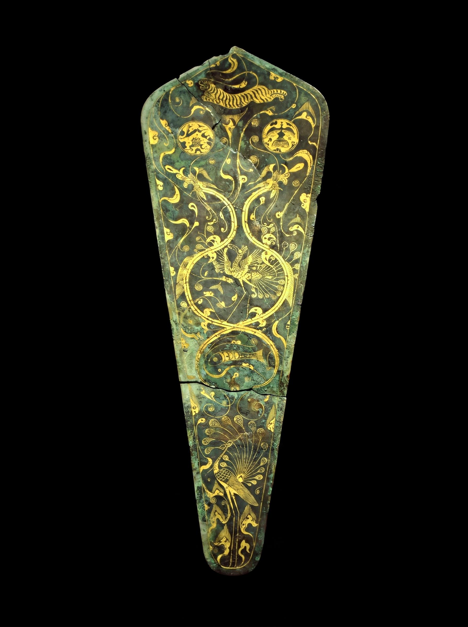 那些细如游丝的金线,在幽绿的铜锈间突围而出