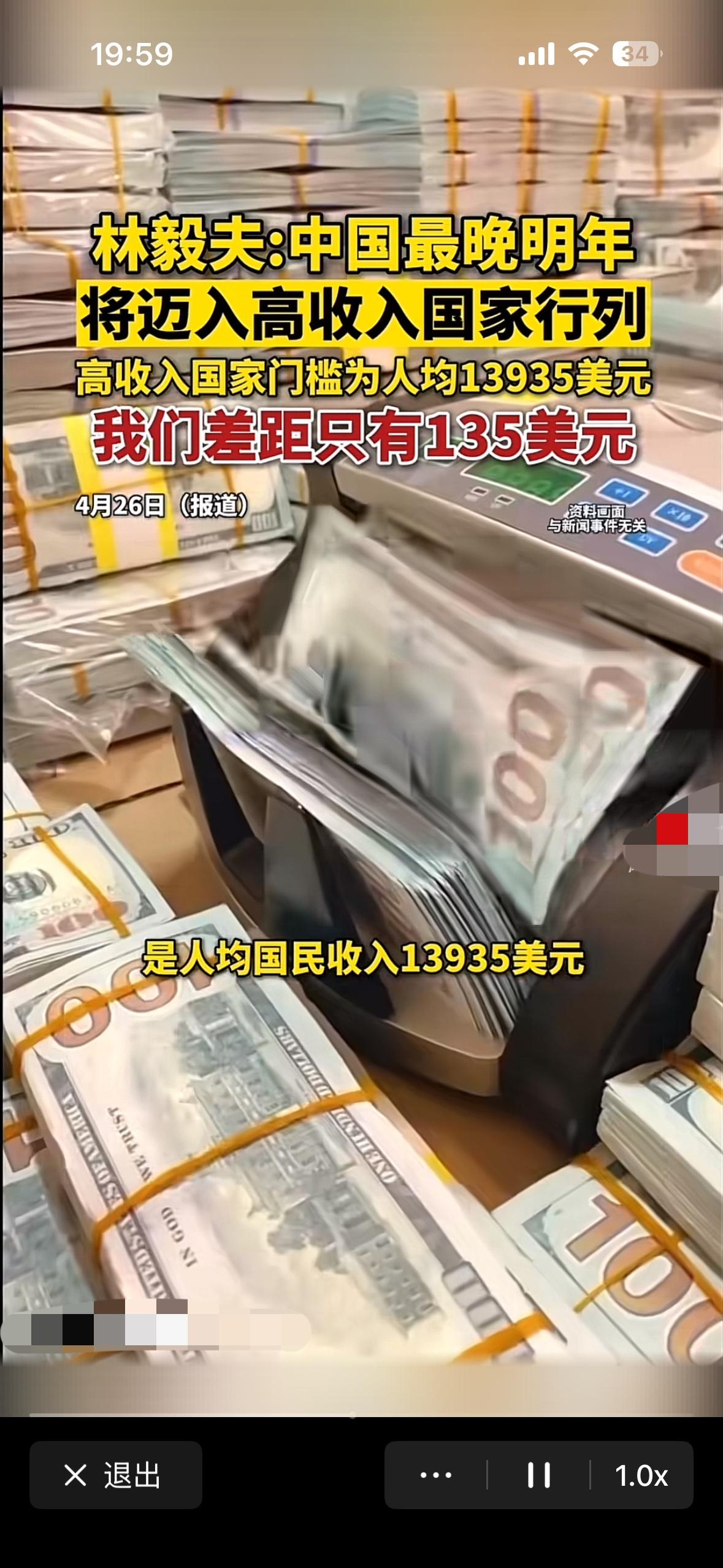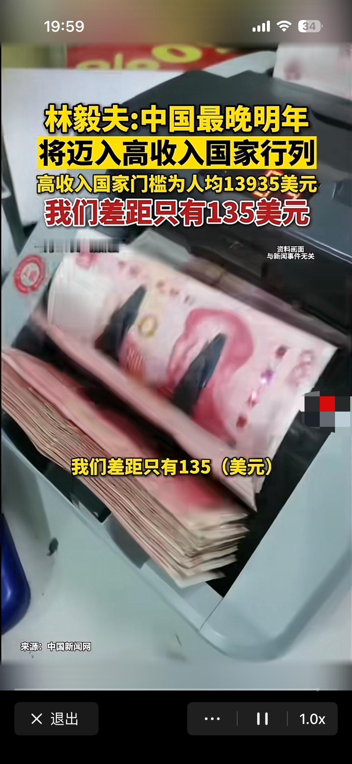 可喜可贺,最迟明年大家都要迈入高收入国家的门槛了。我们距离高收入国家只有135美元,到时候大家幸福满满,金钱多多。
