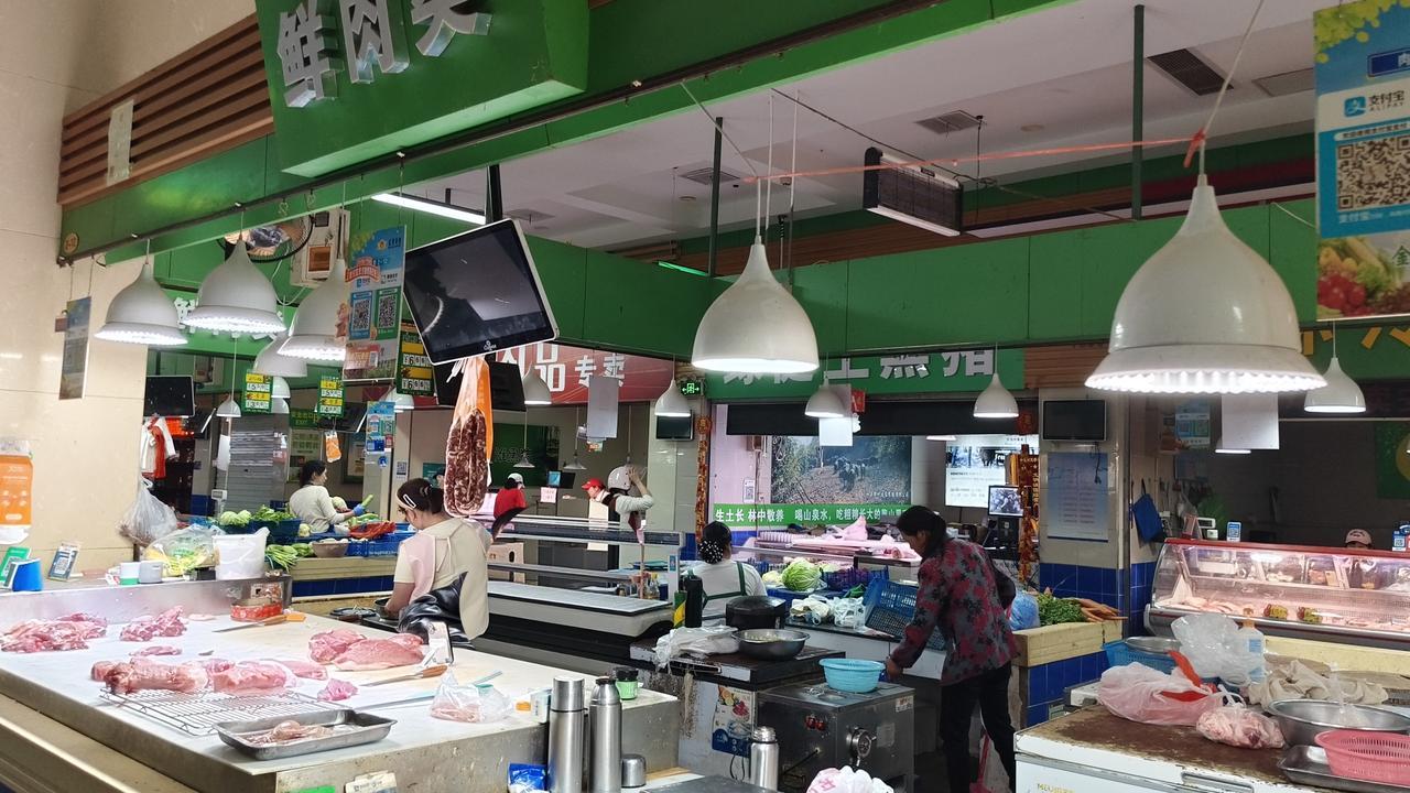 取而代之的,是清一色亮堂堂的白色LED灯,打在肉和菜上,是什么颜色就是什么颜色,再也没有昔日那种把的肉照得通红的“滤镜效果”了。