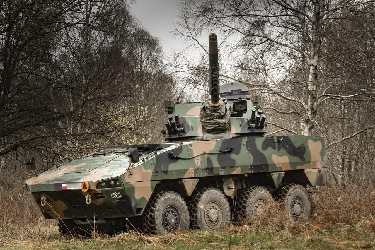 波兰国防军21.波德哈莱射手旅M120 Rak自行轮式迫击炮。