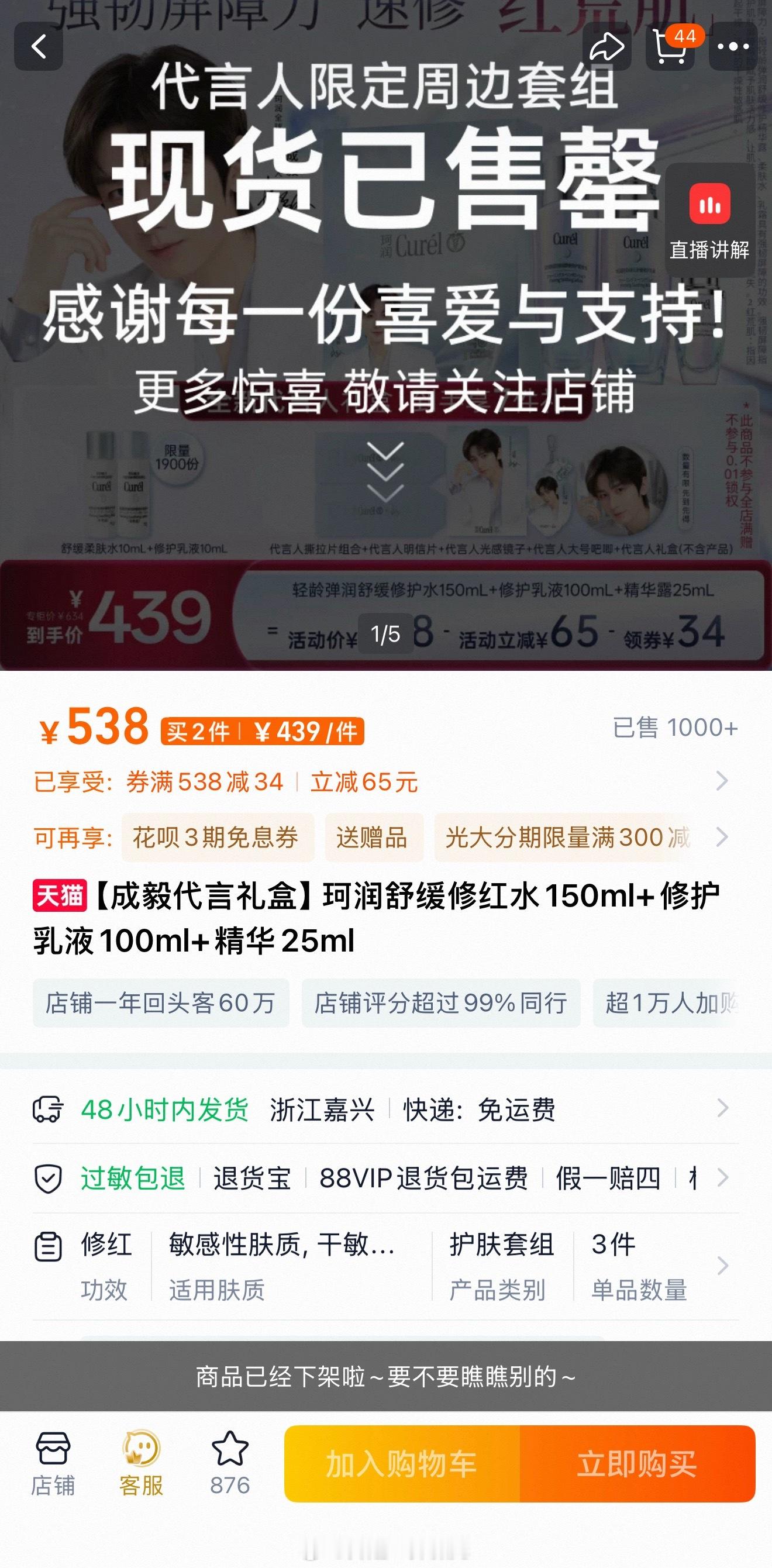 成毅珂润全球品牌代言人 救命10点开售,10点01分就售没了。。。听说代言人成毅今天晚上还有直播,代言人心想,晚上可以不用上班了,货都卖完了