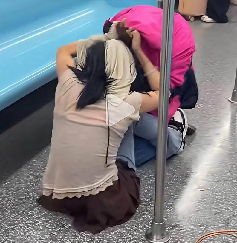 一瞬间,两个人扭打在车厢中间,乘客拉都拉不开。
