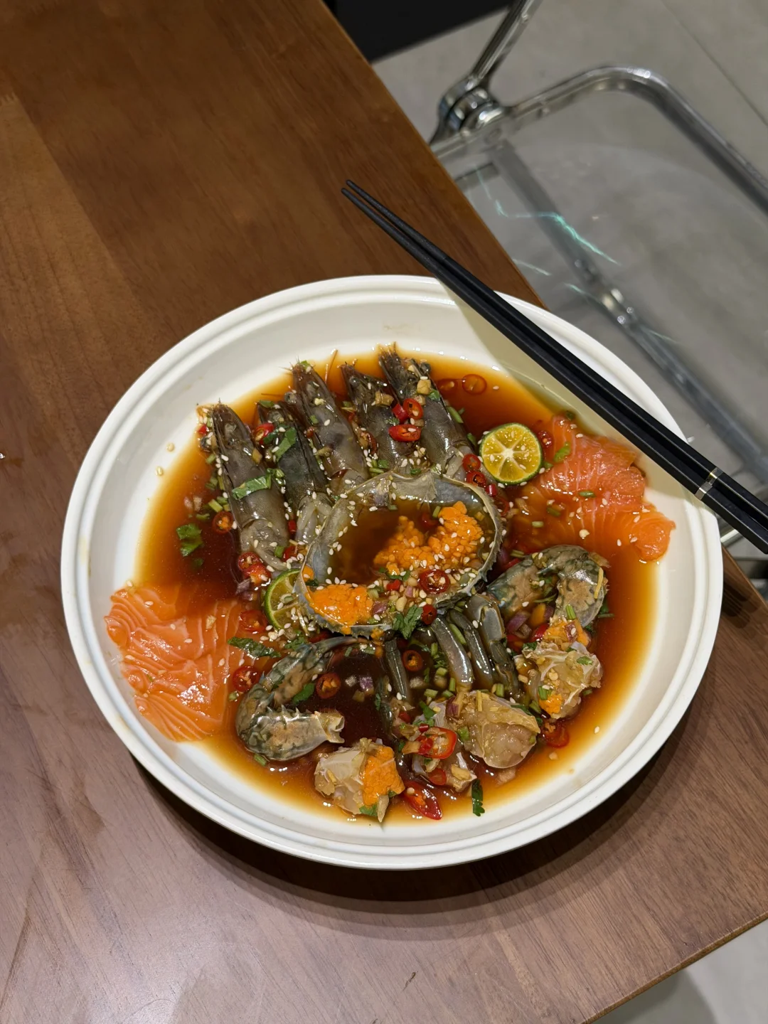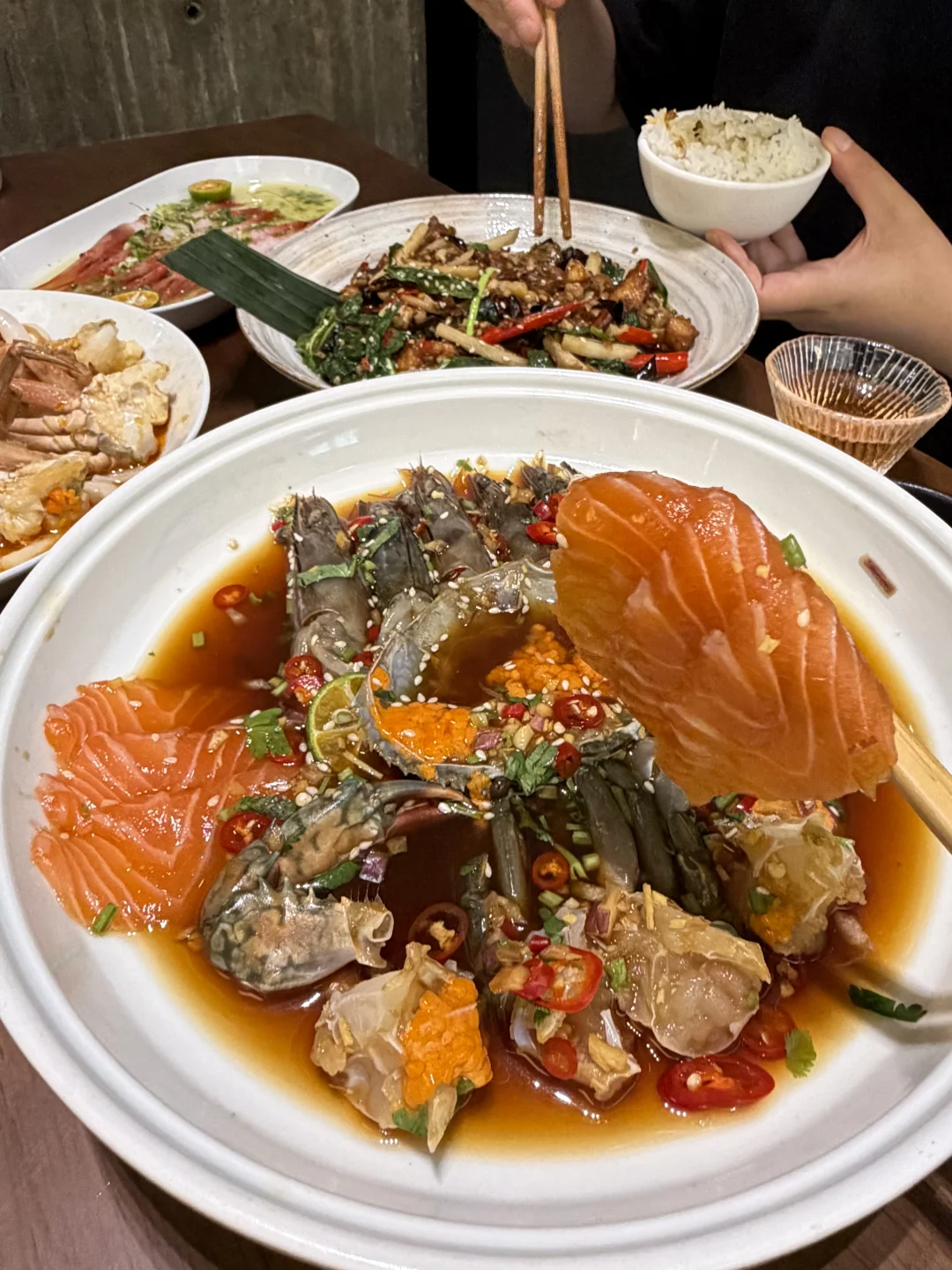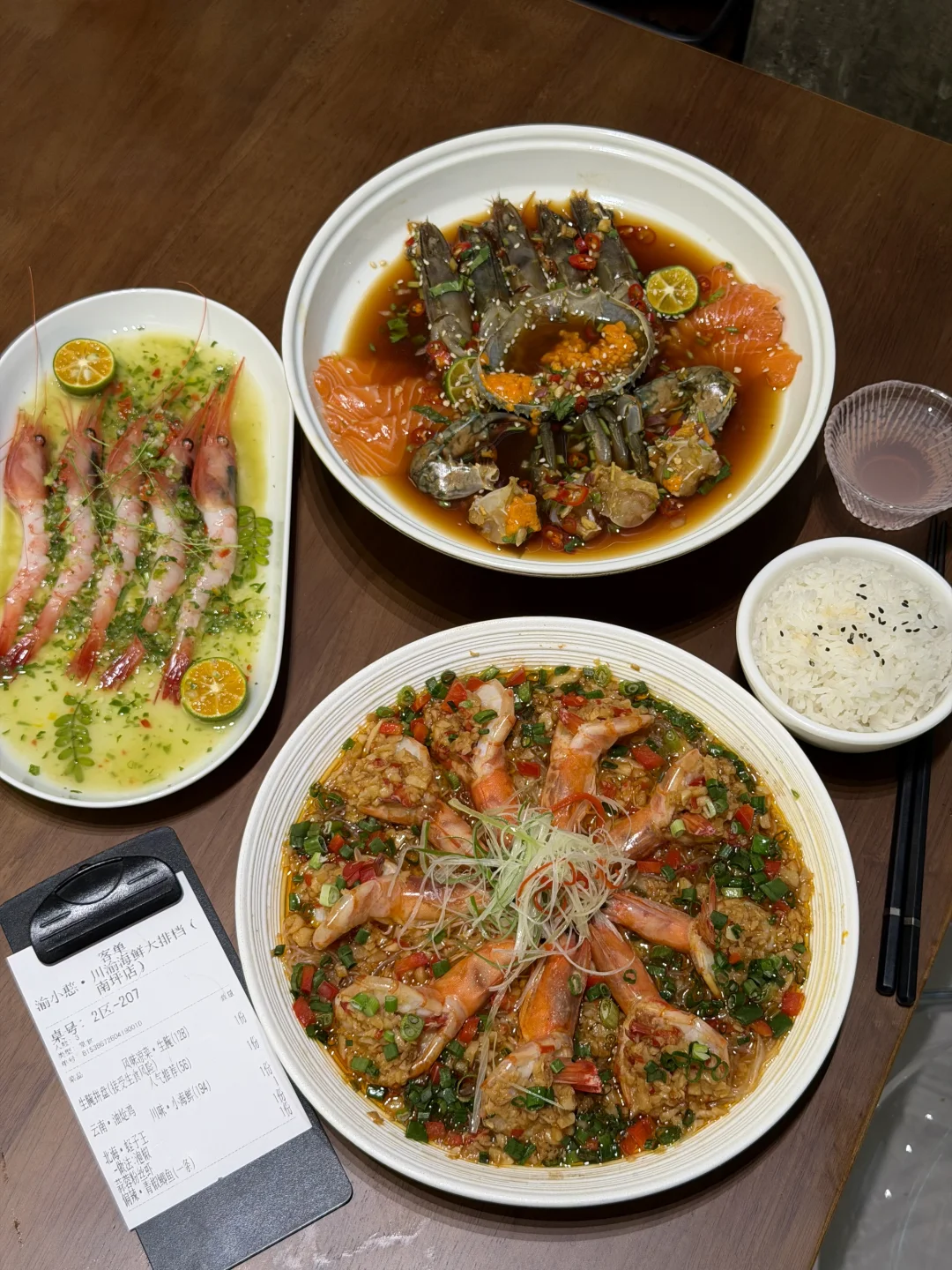 可以说是我在重庆去的最多的一家海鲜店,环境很舒服,海鲜的品质真的没话说!罗氏虾我们每次都会点,黑胡椒和蒜茸做法都很好吃😭😭!基本没有踩雷的菜品!新出的海鲜米粉跟糟粕醋海鲜锅,份量比想象的大!还有生腌跟一些偏云南口味的下饭菜,真的很适合跟朋友聚餐或者约会!!!