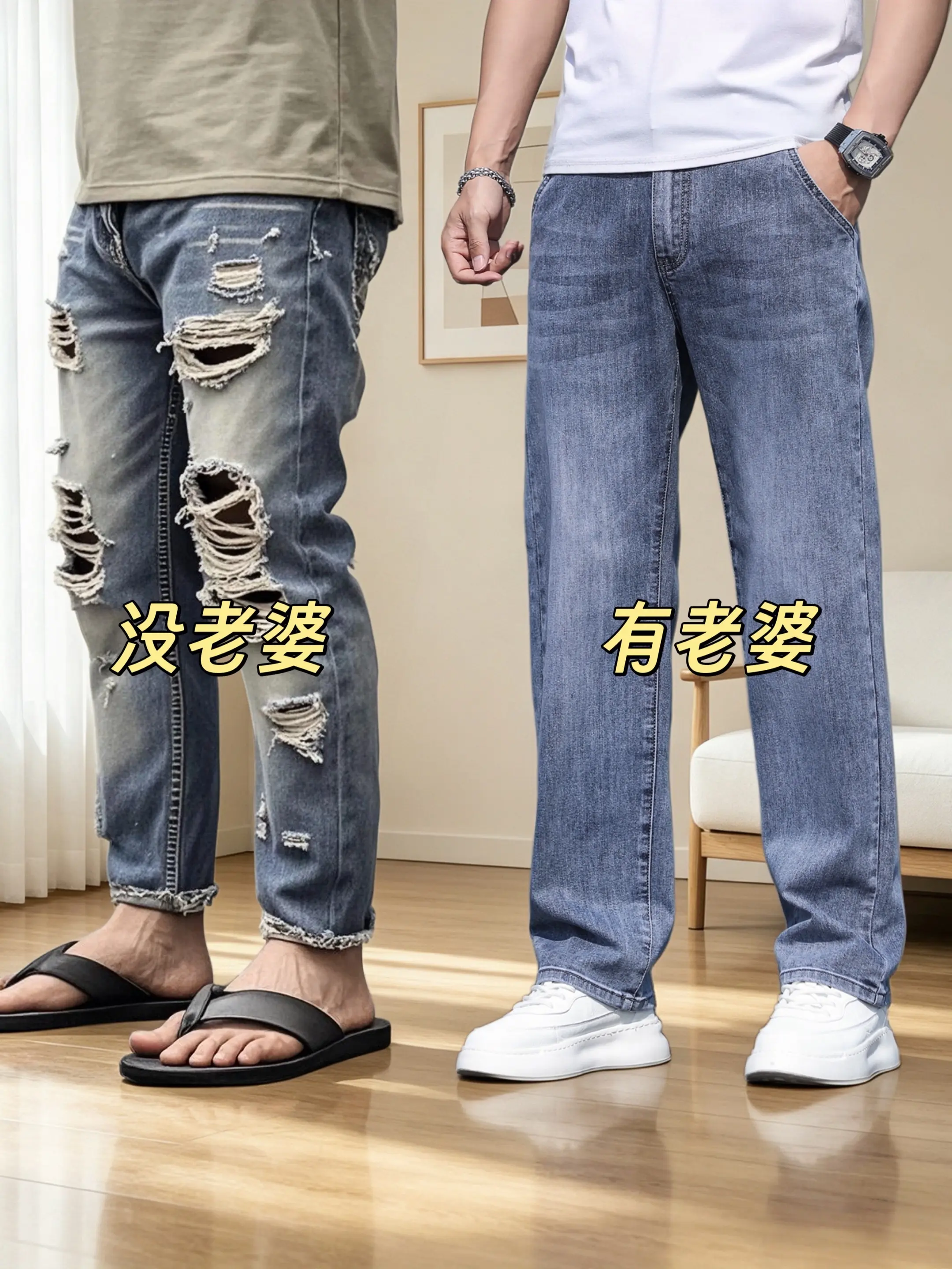 男友那让人窒息的穿搭 阔腿垂感牛仔裤男款 宽松直筒牛仔裤男 男士经典直筒阔腿牛仔裤 直筒牛仔裤男宽松