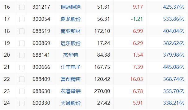 复盘来看,流通市值超 300 亿元且股价创出历史新高的个股共计 24 只。其中立讯精密市值最大,约 5244 亿元。按市值区间划分:流通市值 1000 亿元以上标的共 10 只,行业主要集中在 AI 硬件产业链,涵盖 PCB、高速线缆、AIDC 电源等细分领域;300 亿 —1000 亿市值区间共 14 只,以半导体设备类企业为主。