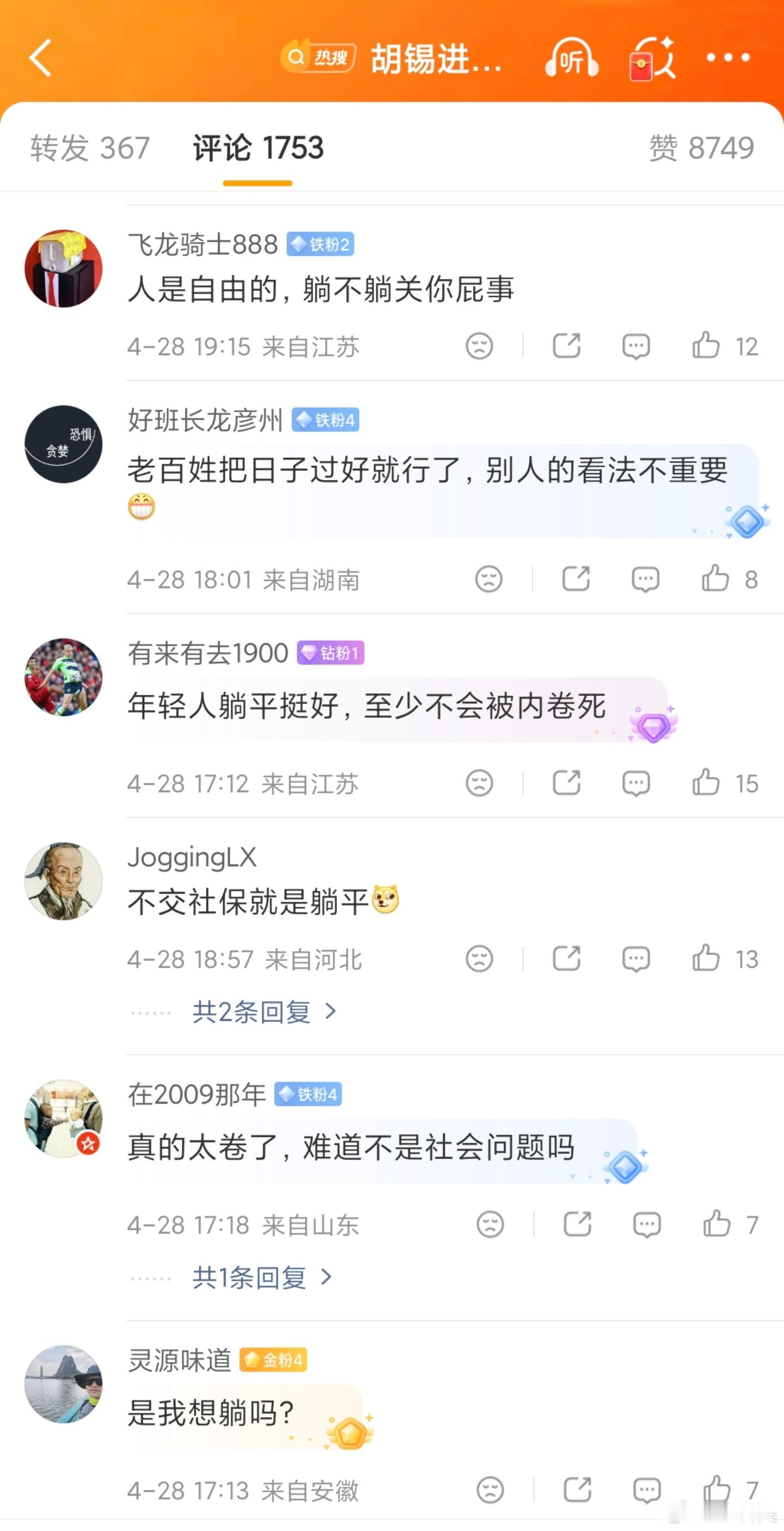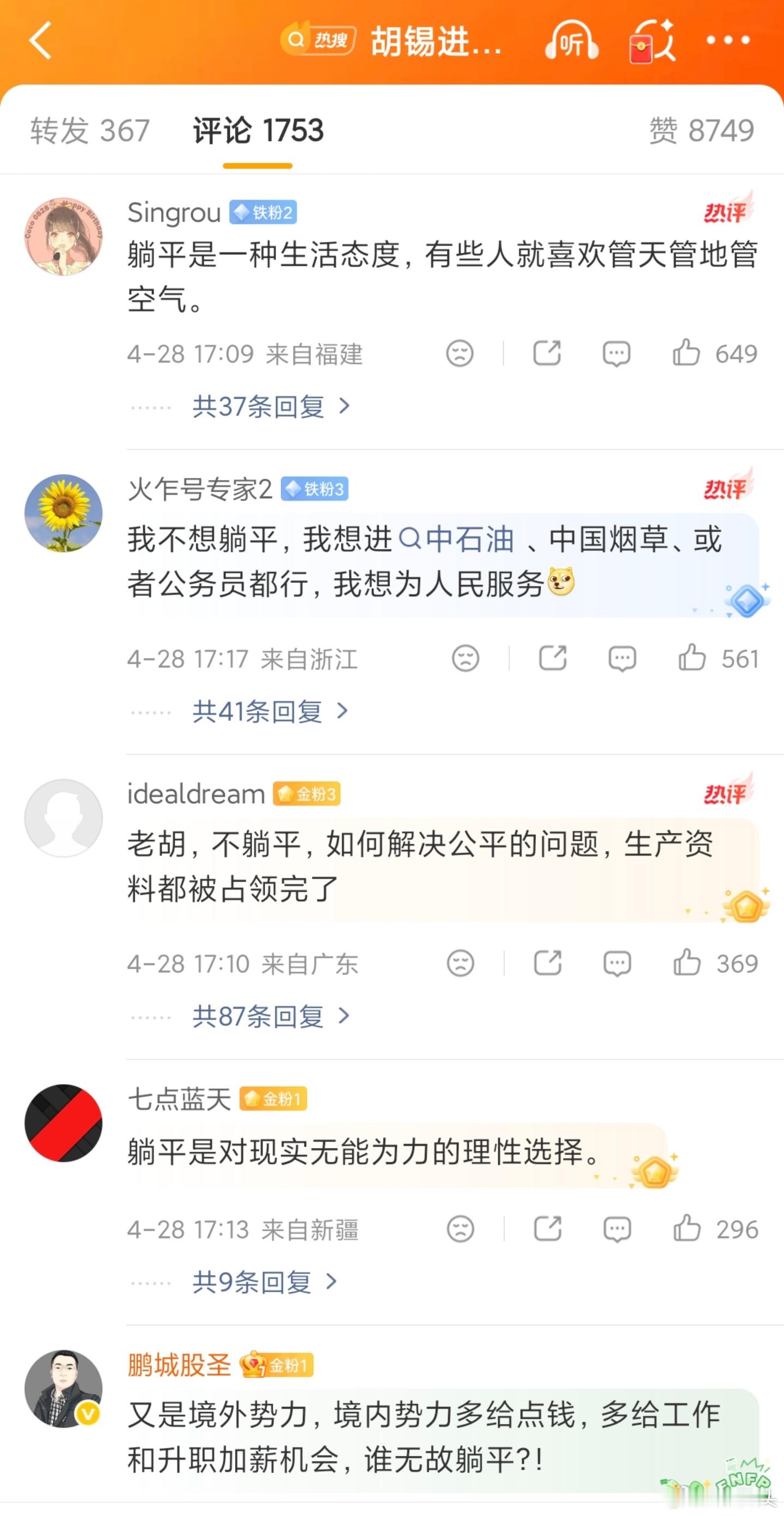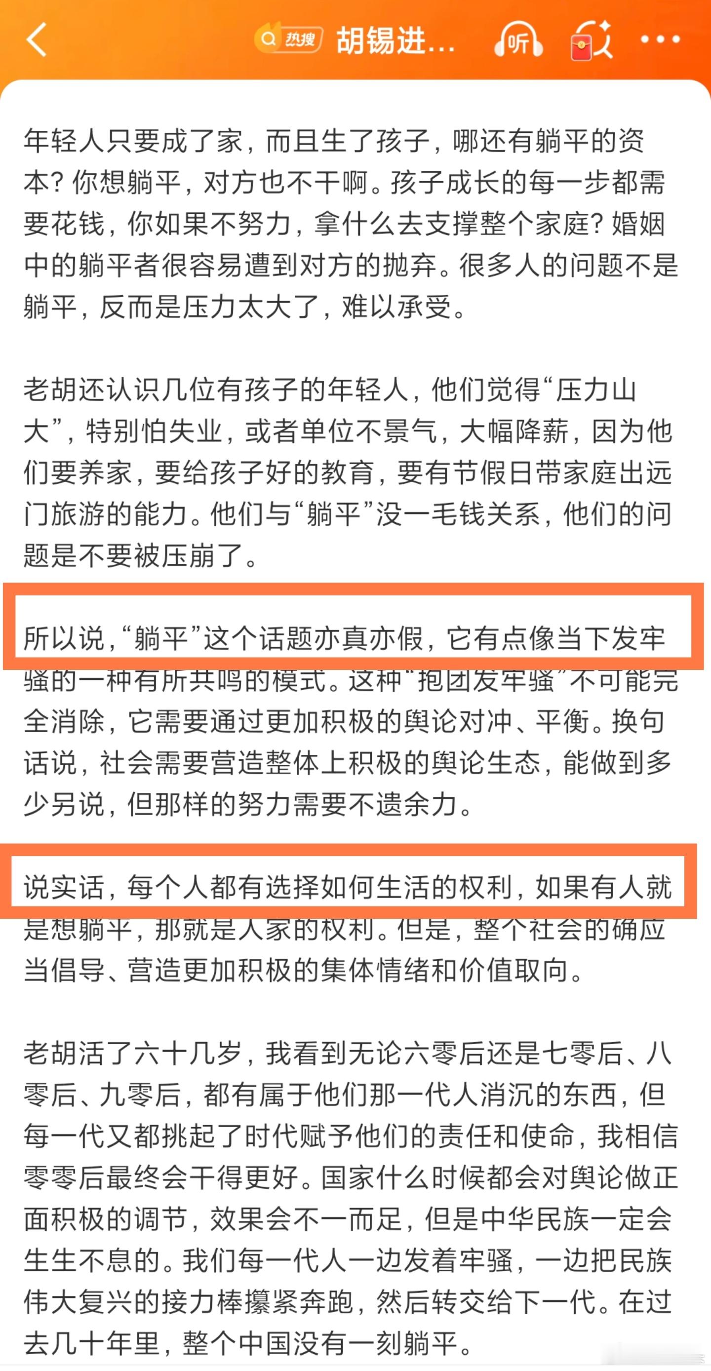 胡锡进谈躺平 胡锡进像是在鼓励躺平,无论是言论还是他的评论区。这样真的好吗?