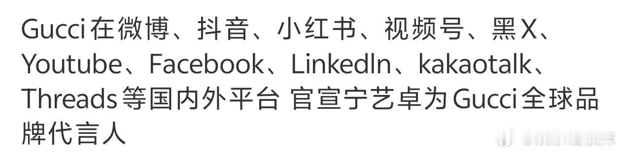 宁艺卓才23岁接宁艺卓事业运恭喜宁艺卓官宣GUCCI全球代言人!23岁的年纪手握高奢顶奢,时尚资源一路开挂,气质与品牌完美契合,未来一路繁花。GUCCI官宣宁艺卓