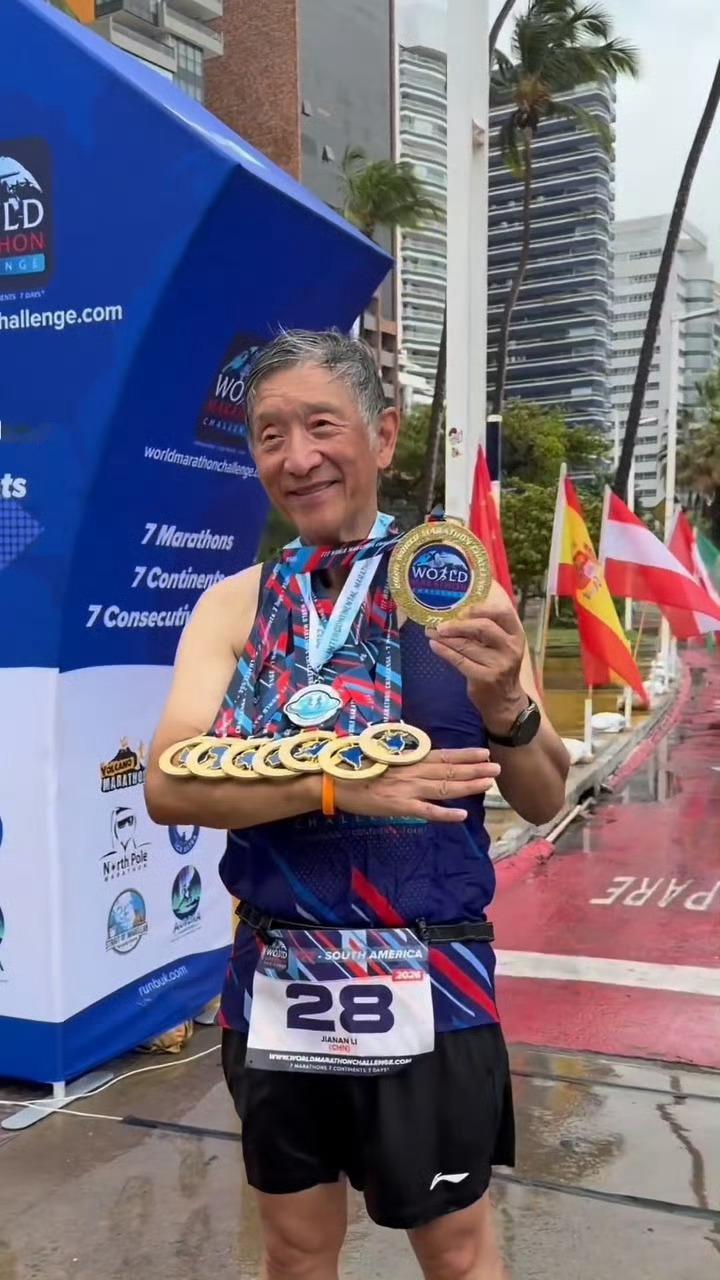 74岁爷爷七天横跨七大洲跑七场马拉松有些人74岁在质疑人生,有些人74岁在七天横