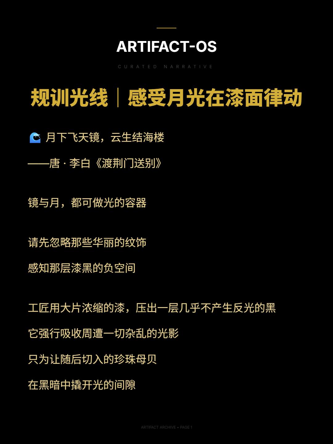 规训光线|感受月光在漆面中律动。🌊 月下飞天镜,云生结海楼——唐 ·...