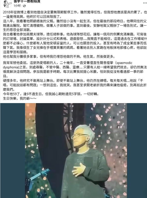 【十一郎曝张宇患罕见声带疾病】张宇患僵直性声音痉挛20年歌手张宇最近现身游鸿明演唱会当嘉宾,相隔8年首度登上舞台开唱,一曲《雨一直下》轻松飙上高音,破除过往倒嗓传言。不过,他近年鲜少公开露面,也几乎未再举办大型演唱会,引起外界揣测。张宇妻子十一郎最近发文透露,张宇20多年饱受“僵直性声音痉挛”(spasmodic dysphonia)困扰,甚至严重到不唱歌连说话都可能出问题。这是一种影响声带控制的罕见疾病,他多年来四处求医,只要有一线希望都愿意尝试,却始终无法彻底根治。(联合报)