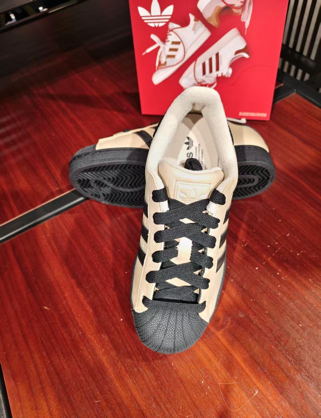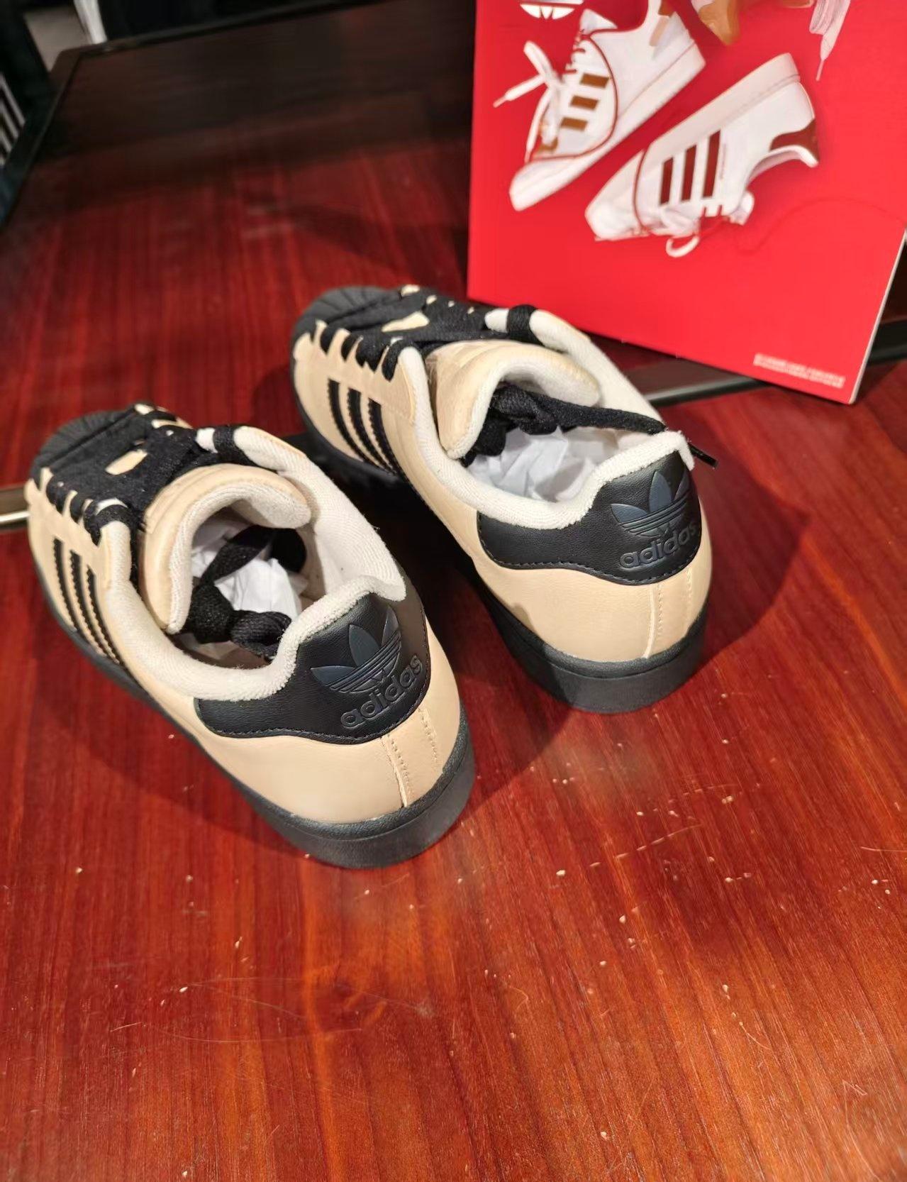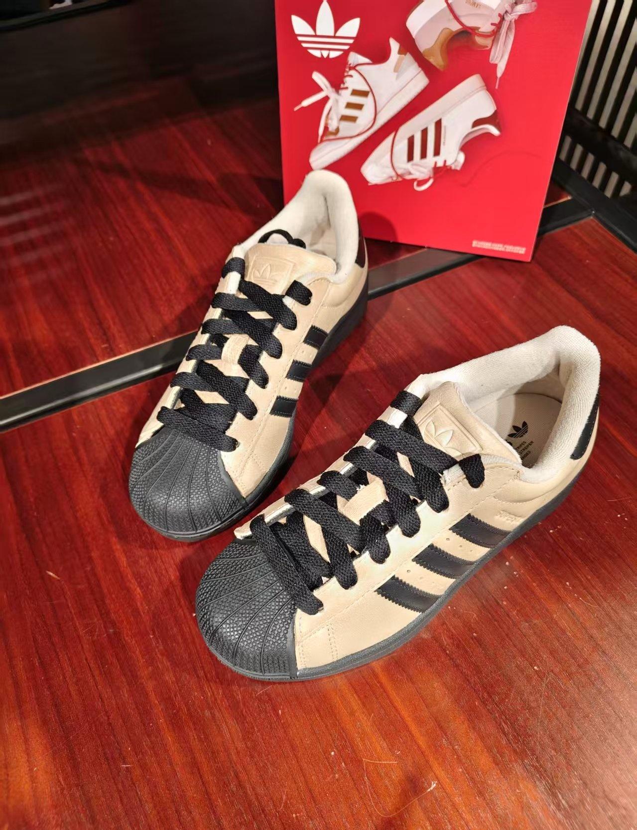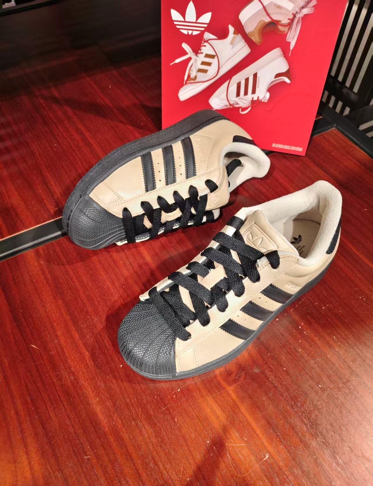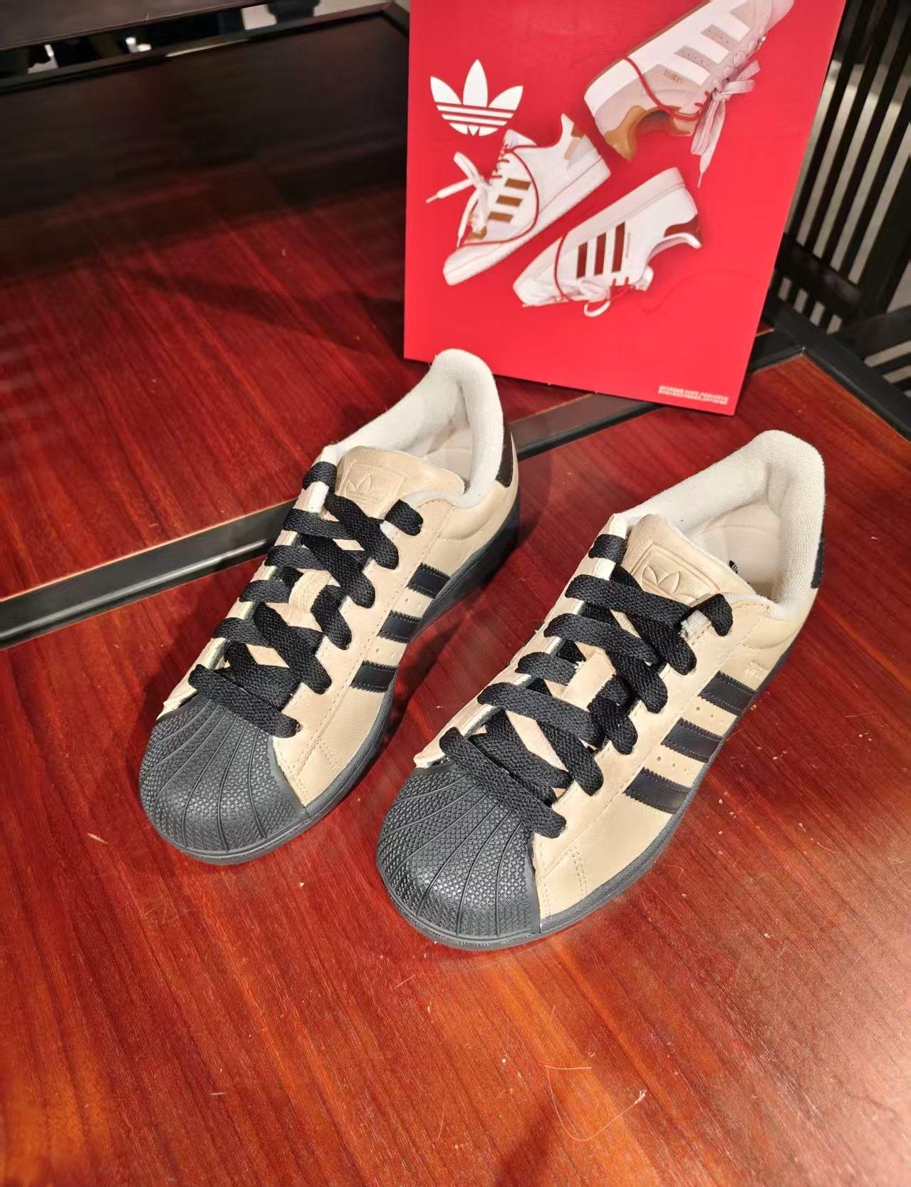 潮流必备~帆布鞋搭配 📍上海 adidas(滔搏翠竹路万达广场店) 深棕+黑色的过渡高级不浮夸,阳光下泛着温柔光泽,比纯黑更有次,比板鞋浅棕更耐脏 经典贝壳头+小蛮腰型,上脚自动修饰脚型,显小又显瘦,男女同款情侣穿超吸睛