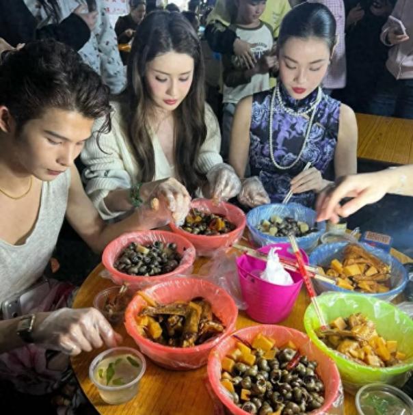 大年初八的夜晚,广西某夜市街头出现了罕见一幕。韦雪、陆仙人、氧化菊三位网红并肩而坐,在一家毫不起眼的路边摊前,低头嗦着螺蛳。三人围坐小桌,韦雪夹在陆仙人和氧化菊中间,周围不少路人驻足观看,手机镜头记录下这接地气的一幕。面对围观,三人依然淡定自若地继续享受美食,这份从容让人看到了网红真实生活中的一面。