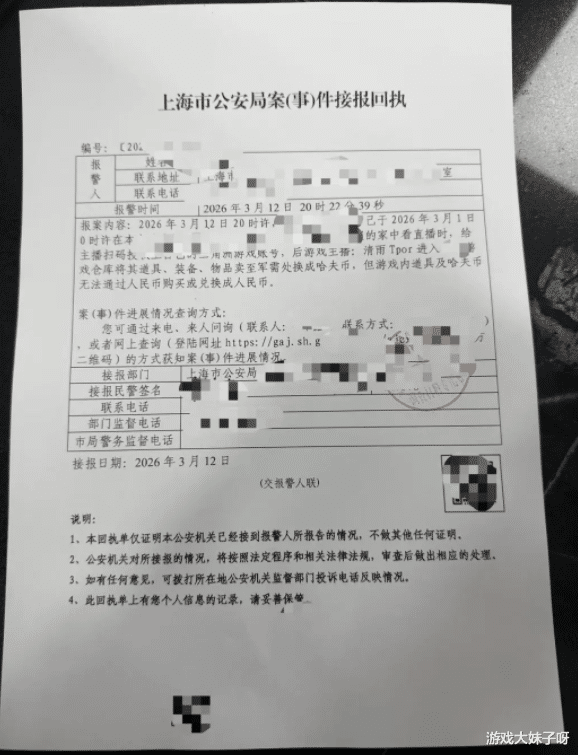 随着事件不断升级,相关平台和当事玩家也开始通过法律途径维权,根据虚拟资产交易平台盼之App官方发布的消息,平台工作人员已经陪同账号持有者五月食伍前往上海报案,并获得了上海市公安局开具的案件接报回执。