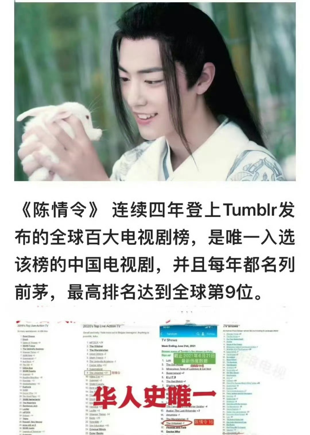 把肖战送上顶流宝座的《陈情令》,不仅是当年鹅厂的年度剧王,而且该剧还连续4年登上全球百大电视剧排行榜。