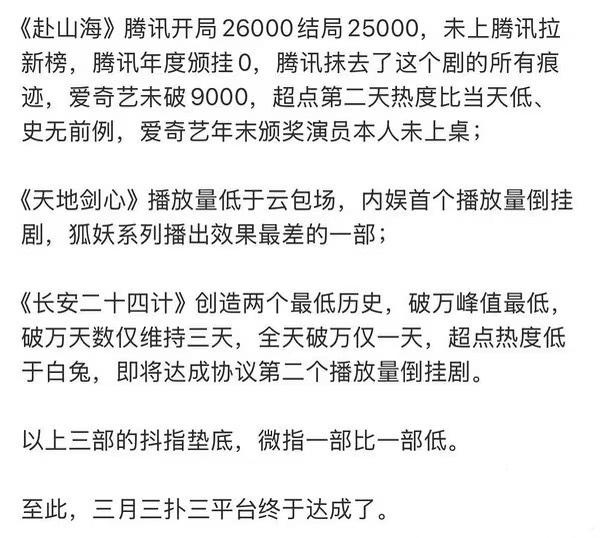 甚至因为广电总局年度总结中,成毅领衔主演的《赴山海》、《天地剑心》、《长安二十四计》三部剧均未被纳入重点剧集表扬名单,被网友解读为“官方除名”。