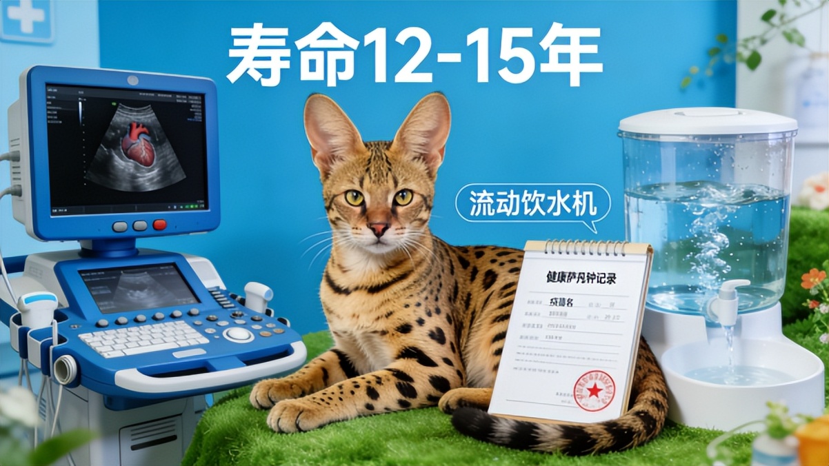 萨凡纳猫因杂交育种的特殊性,健康管理需重点关注遗传风险与环境适配性: