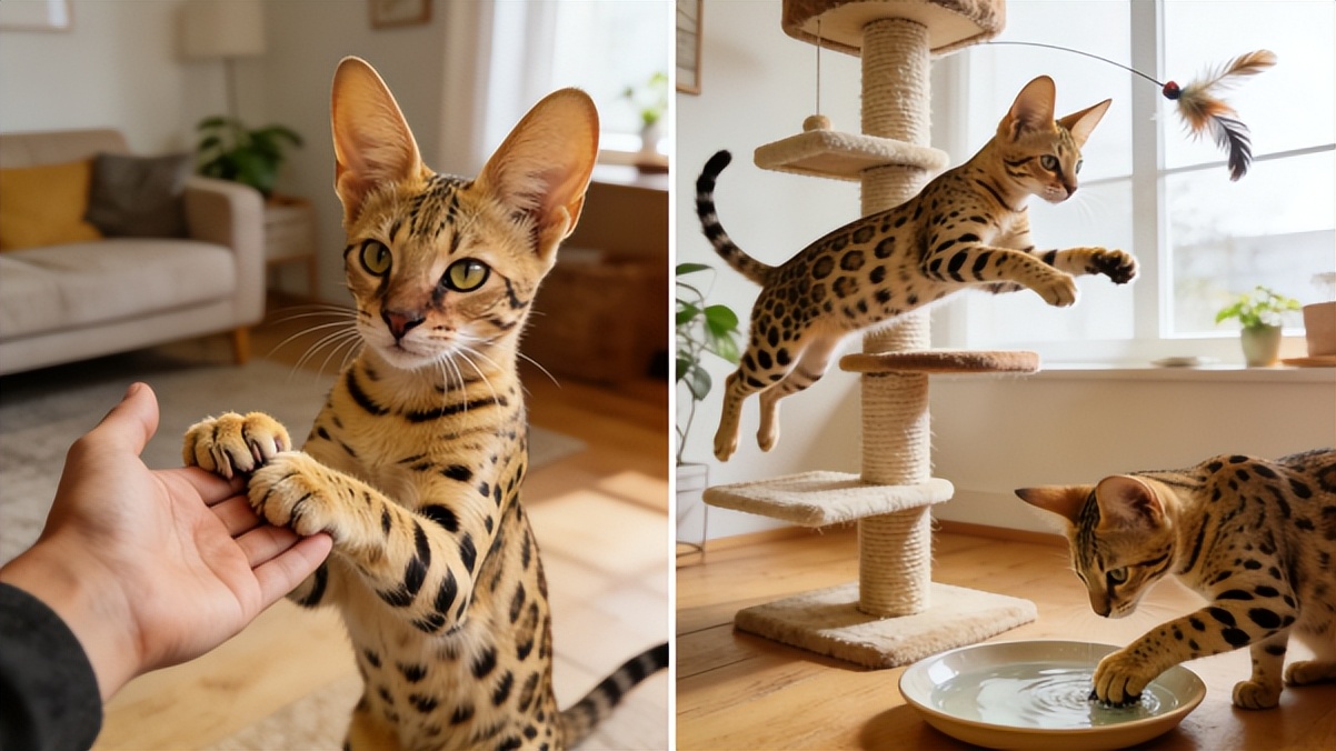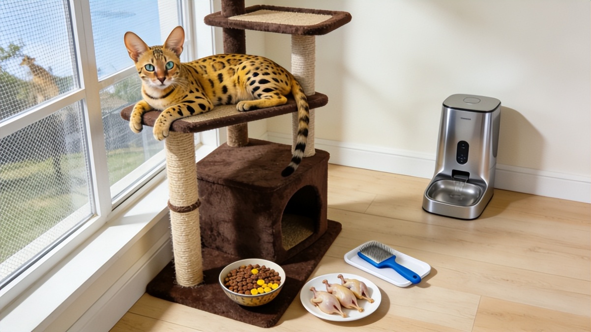 萨凡纳猫的饲养需充分考虑其大型体型与高活力需求,制定针对性管理策略:
