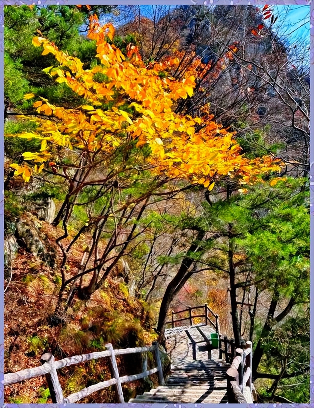 秋日层林尽染,红叶与青松相映,色彩斑斓;冬日银装素裹,雾凇挂满枝头,尽显北国山水的雄浑。