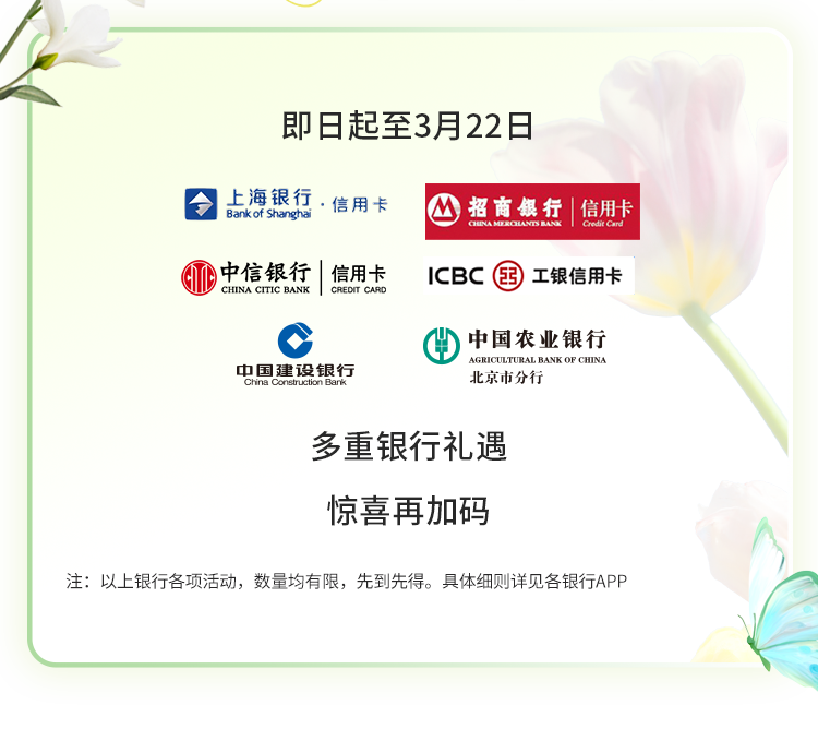 大牌2折起、满减返券、多倍积分、银行礼遇……