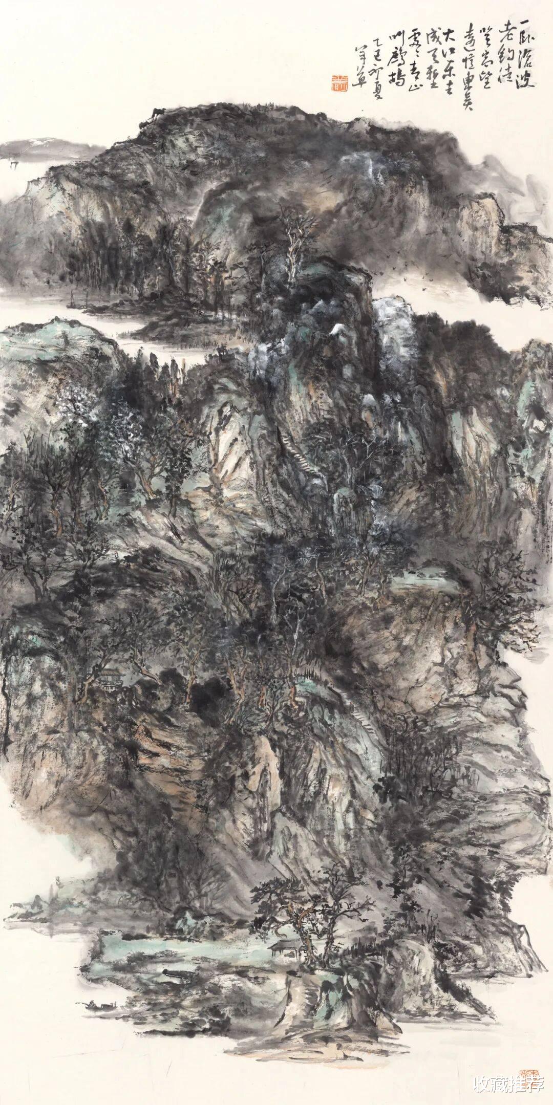 值得注意的是,羊草近年的山水画“变化也很大”。他不再拘泥于传统章法程式的堆砌彰显,不再崇尚于“大山大水”的宏大叙事,转而追求画面的“诗情画意”和内涵与形式“意料之外而情理之中”的“趣味性”,这种转变的个性情调可说与元代倪瓒“逸笔草草,不求形似”的美学追求遥相呼应。他还大量写生,时而跋山涉水,时而庭院徜徉,目之所及,心之所向,笔之所现;羊草“在传统中吸收营养,在写生中寻找素材”,使他的山水画既有传统的笔墨底蕴,又洋溢着鲜活的生活气息,既是以心造境,又是境物自如。进而,他将花鸟画硬朗的线条融入山水画创作,让线条不仅是勾线绘形的表达,而更是块面组织的质化,形成了独特的笔墨语言,这种跨科目的“互相渗透”展现出一个成熟画家敢于自我突破的勇气。