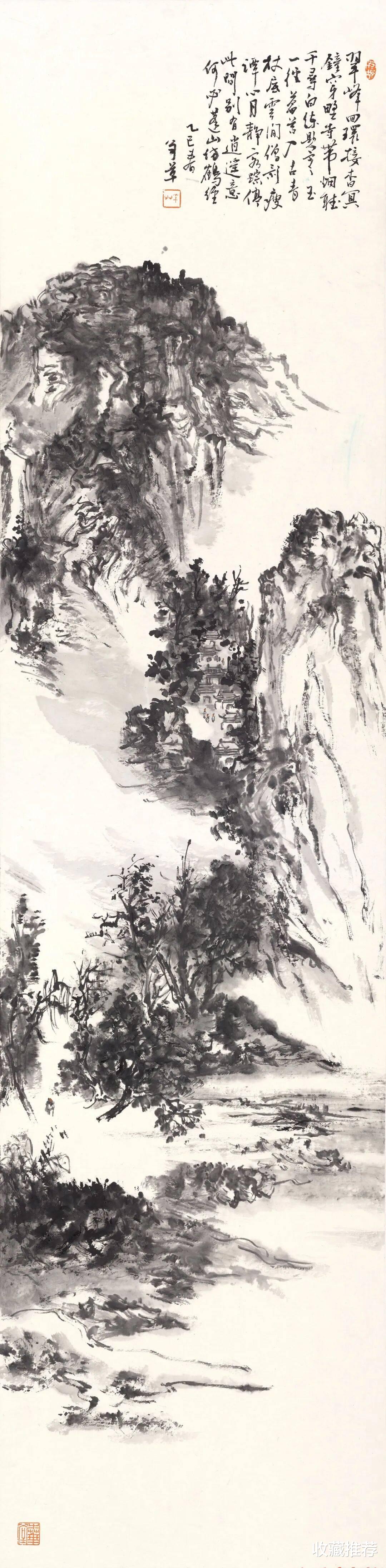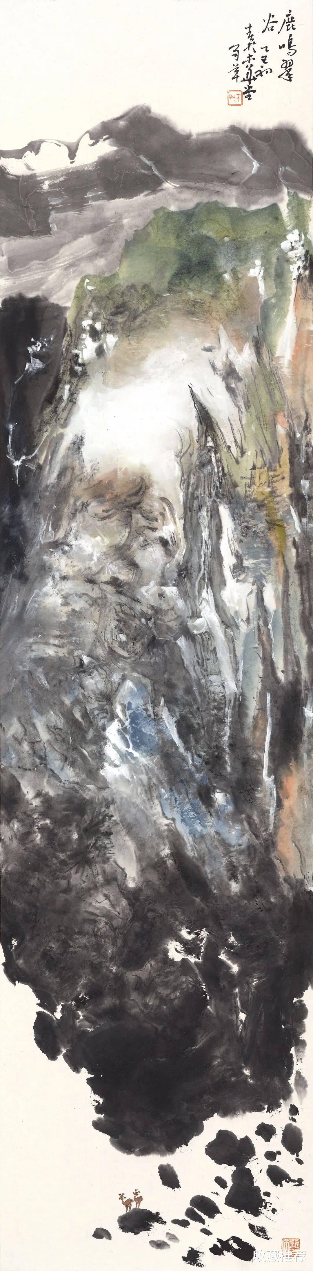 《鹿鸣翠谷》 纸本设色 138×34cm