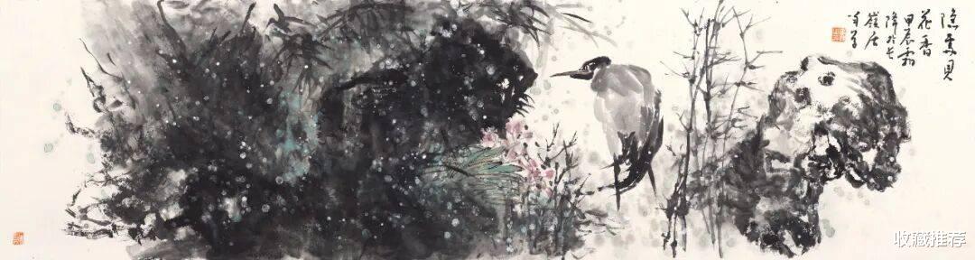 在材料应用上,羊草表现出“不拘一格”的实验精神。他不再拘泥于“惜色如金”的传统戒律,而是彩墨兼融;不再拘泥于笔墨渊源的苛求讲究,而是敢破敢立;他在完整的画面上大胆使用冲水泼色,追求一种天然偶得的美感,他将形式不一而又协调自然的粉白尽情挥洒点染,使到画面抢目提神,探索一种富有当代性色墨交融的画面效果;这种对材料的开放性态度令人想起张大千晚年的泼彩实验。然而,羊草的创作却始终以传统为基调,以突围为探索,正如他所说的“其实依然一脉相承”。他的“泼写多了”不是对传统的背离,而是对文人画“墨戏”精神的当代诠释。这种在传承中创新的态度,使他的作品既有传统的厚度,又有当下的鲜活感。
