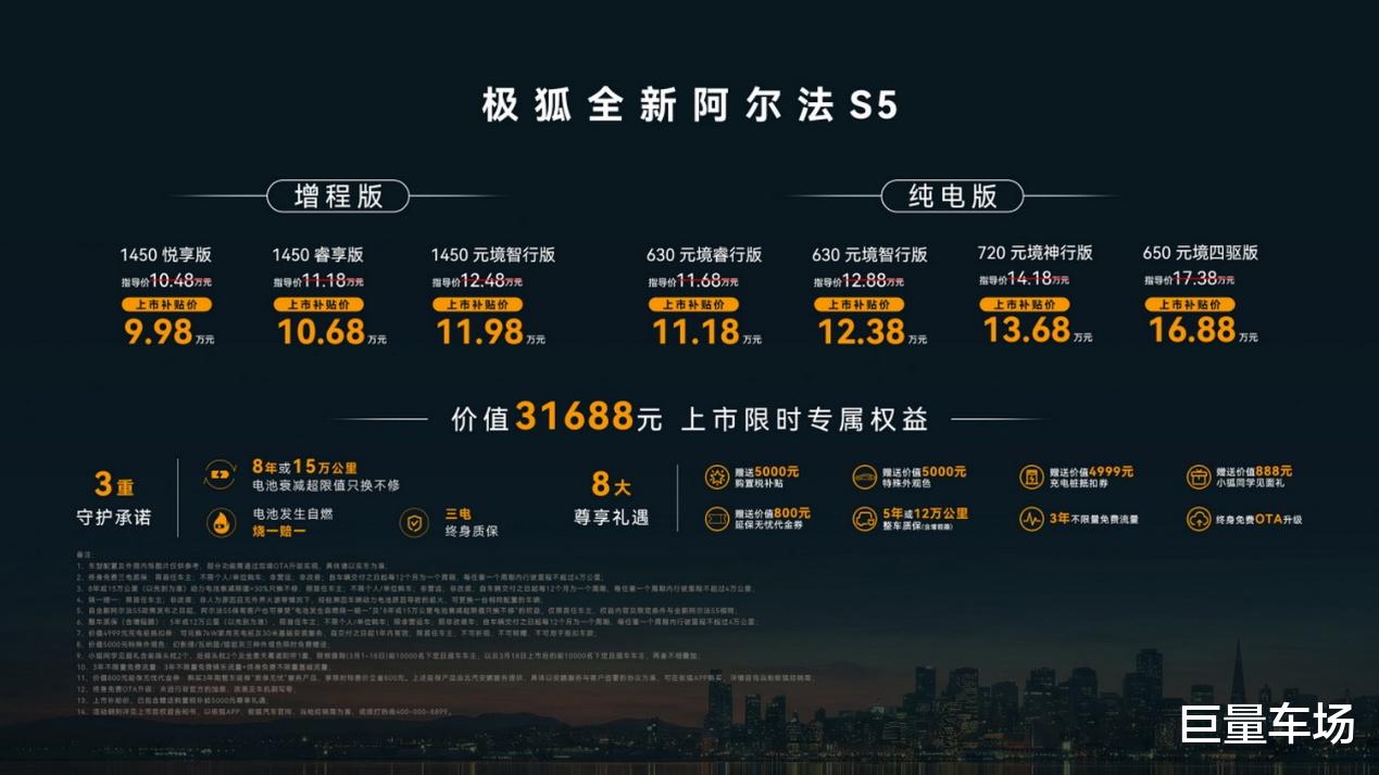 城区NOA入手即满配,极狐全新阿尔法S5上市补贴价9.98万起