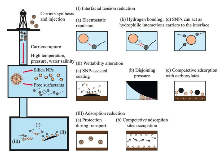 这项研究已发表于学术期刊《地球能源研究进展》。在提高石油采收率的工艺中,表面活性剂是关键化学品,通常通过注入油井来降低油水界面张力、改变岩石润湿性并产生泡沫,从而帮助释放更多原油。该研究不仅对两种未被深入研究的表面活性剂进行了封装探索,还验证了纳米载体在增强其性能方面的作用。